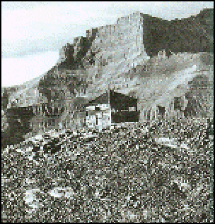 Dramatically located against the vertical escarpment of the Rocky Mountains west of Calgary, Black Rock Lookout is a 10’x 10’ ground house constructed by the Canadian Forest Service in the late 1920s and staffed by provincial rangers. Always difficult to service -- it was a three-day trip by packhorse to bring in supplies -- the lookout was abandoned in the 1950s when part of the trail fell away. In 1995 the “Friends of the Eastern Slope” reshingled the cabin and a Junior Forest Ranger crew reconstructed the trail