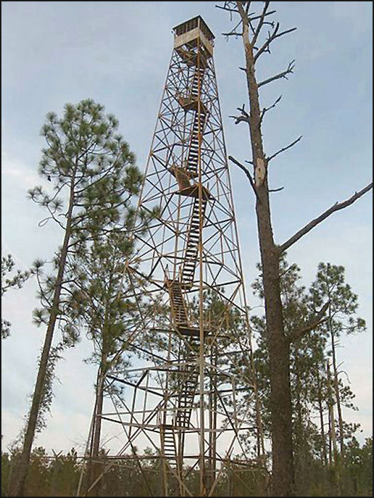 This 100' Aermotor MC-39 steel tower with 7'x7' cab was constructed in 1933 by CCC Camp S-52, one of the first chartered in the state. The builders were Company 1485, a junior African-American unit that also built four other fire towers.