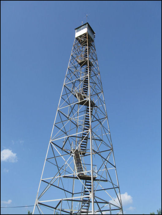 Built by the Alabama Forestry Commission within a peach orchard in 1949, Peach Lookout is 100' Aermotor MC-39 tower with 7'x7' cab.