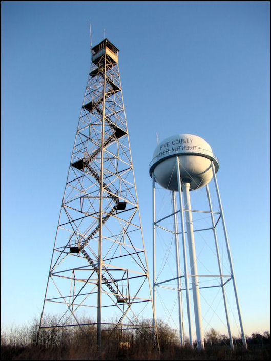 One of the last lookouts built in the state, Saunders Hill was constructed in 1957 by a private contractor for the Alabama Forestry Commission. It is a 100' MC-39 Aermotor with a 7'x7' cab.