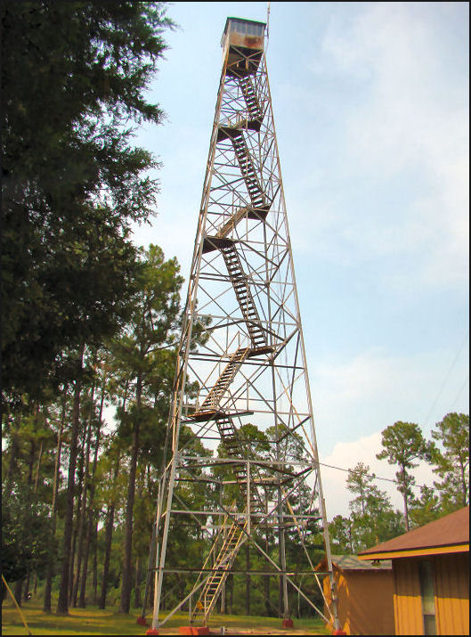 The Simerly Fire Tower is a roadside landmark for travelers to the Alabama beaches. Built after 1942, the 100' Aermotor MC-39 tower replaced a 91' creosote lookout tower.