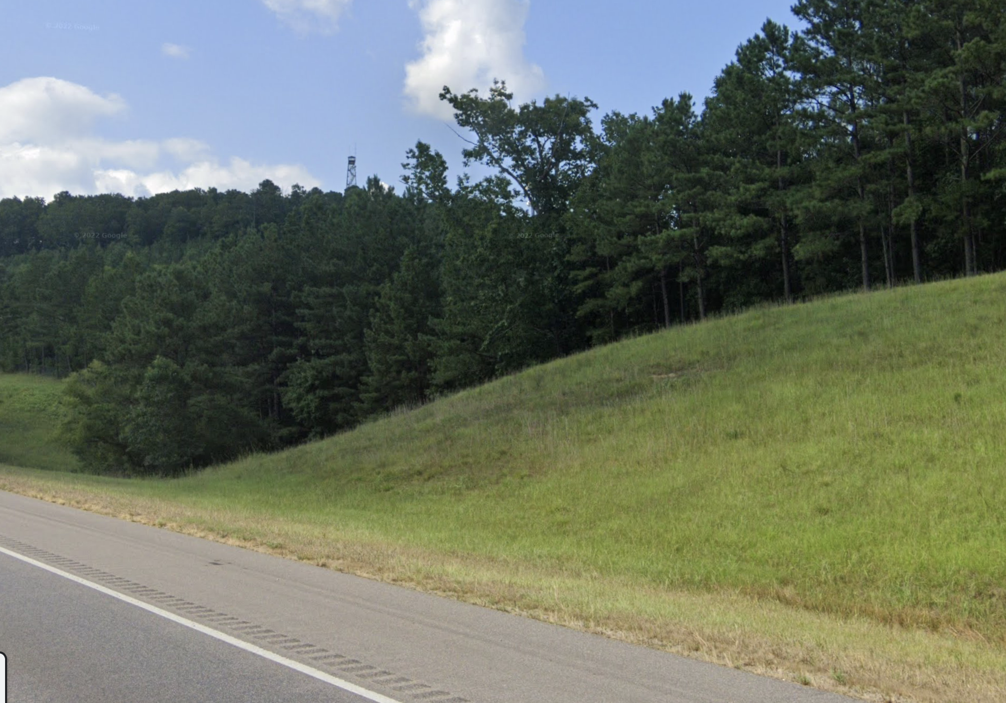 This lookout stands tall next to the busy I-22 interstate. It has an internal diagonal staircase.