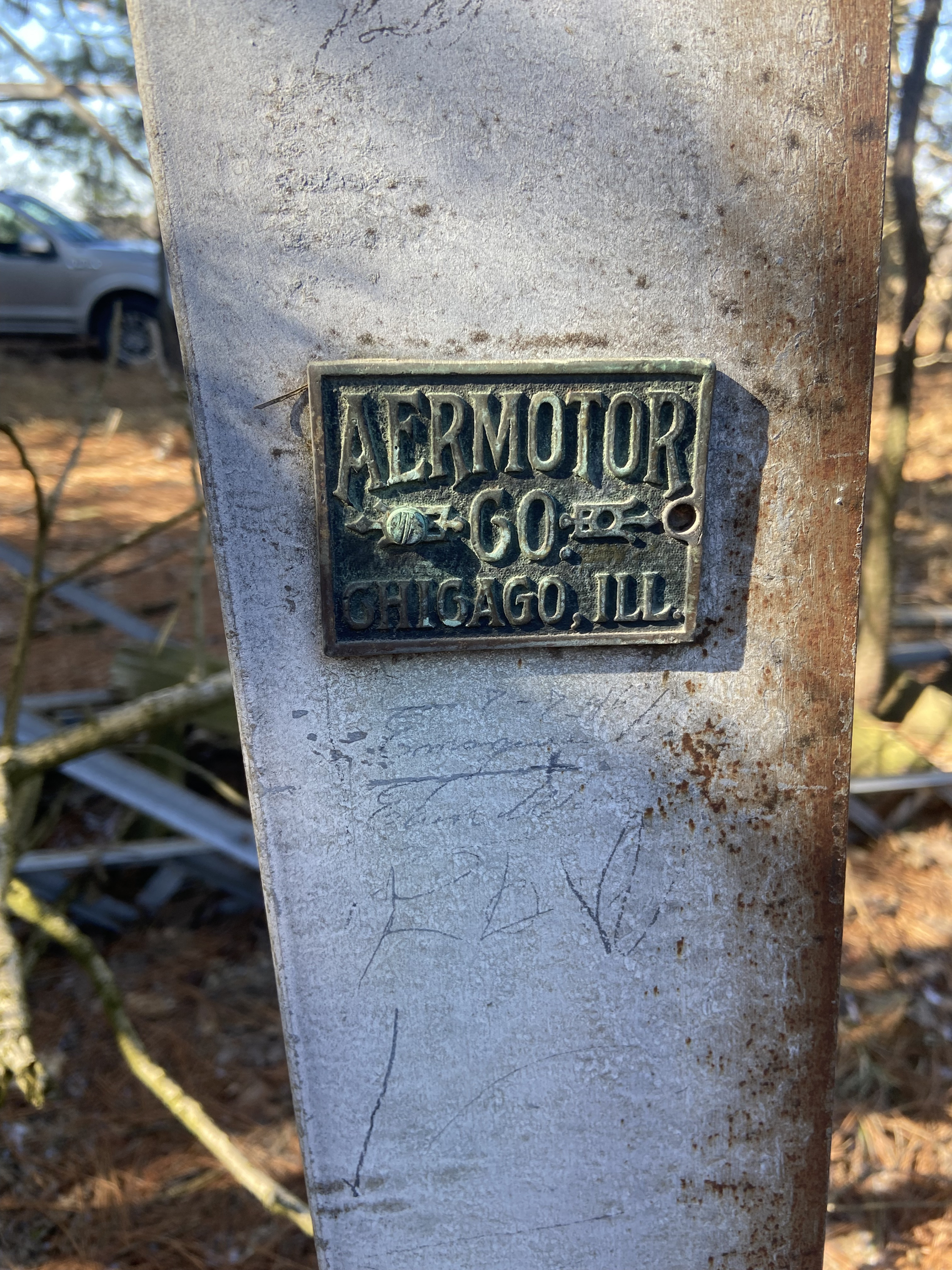This is an Aermotor MC-39 standing 100ft tall. The first flight of stairs were removed.