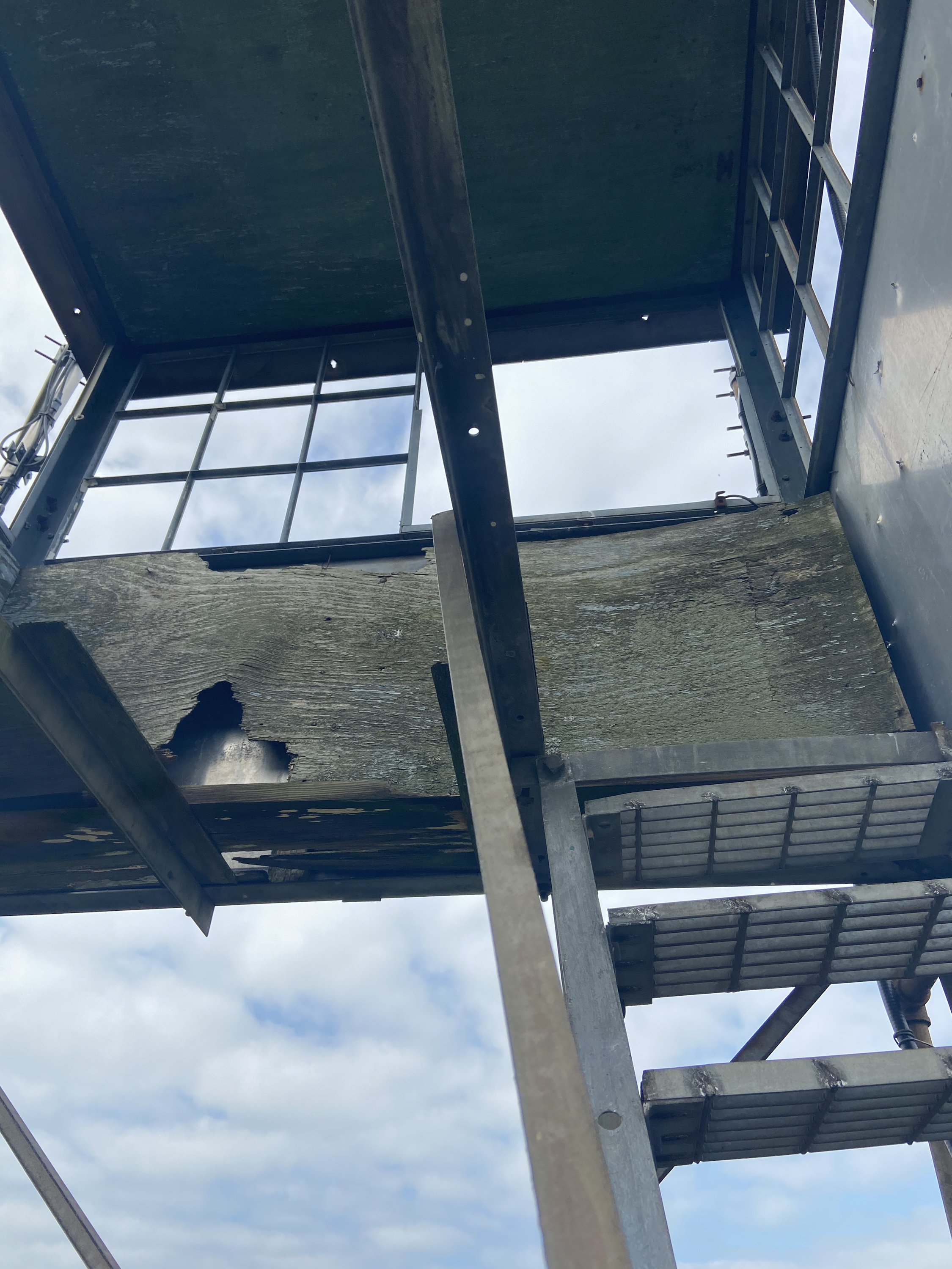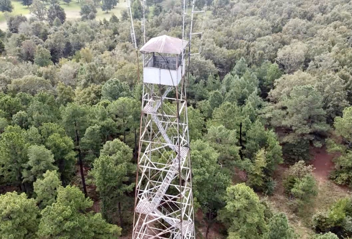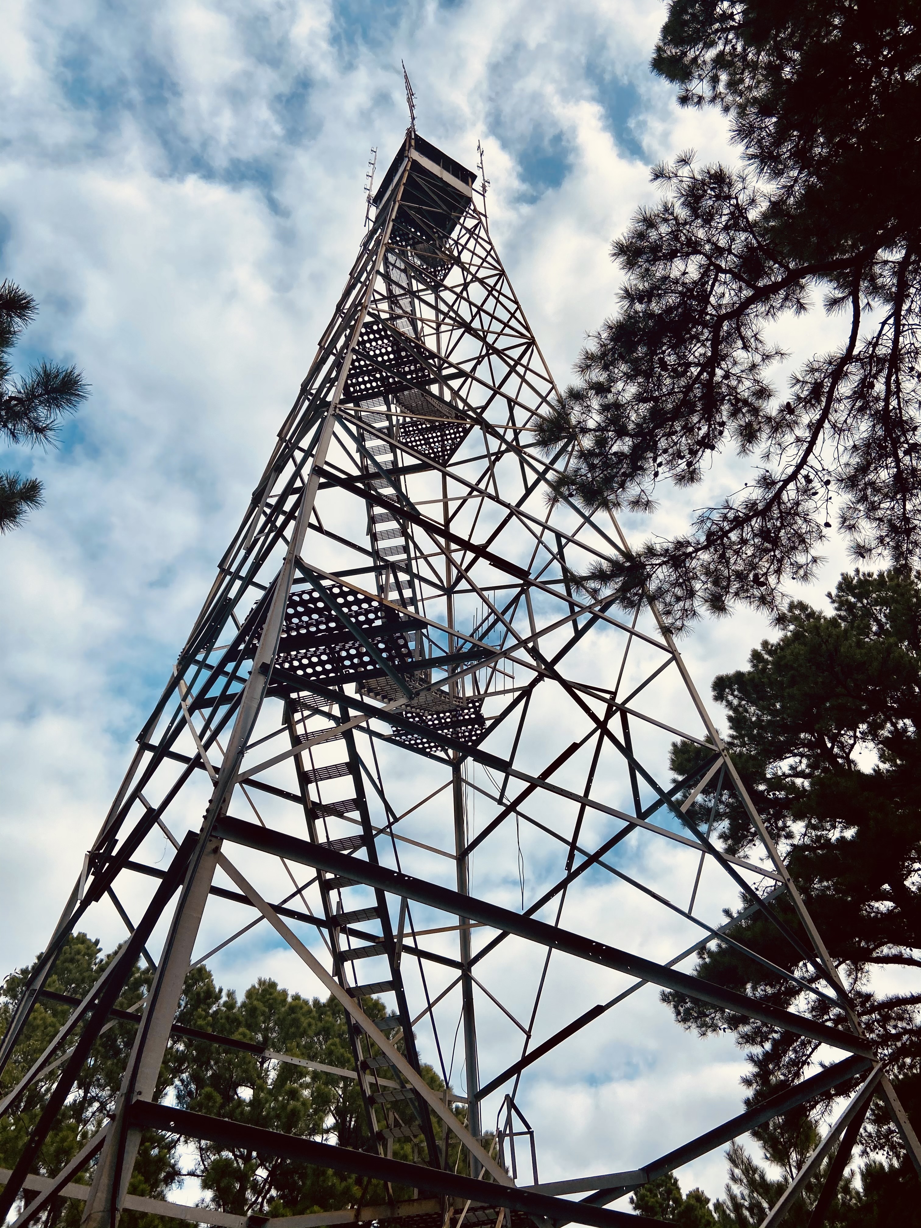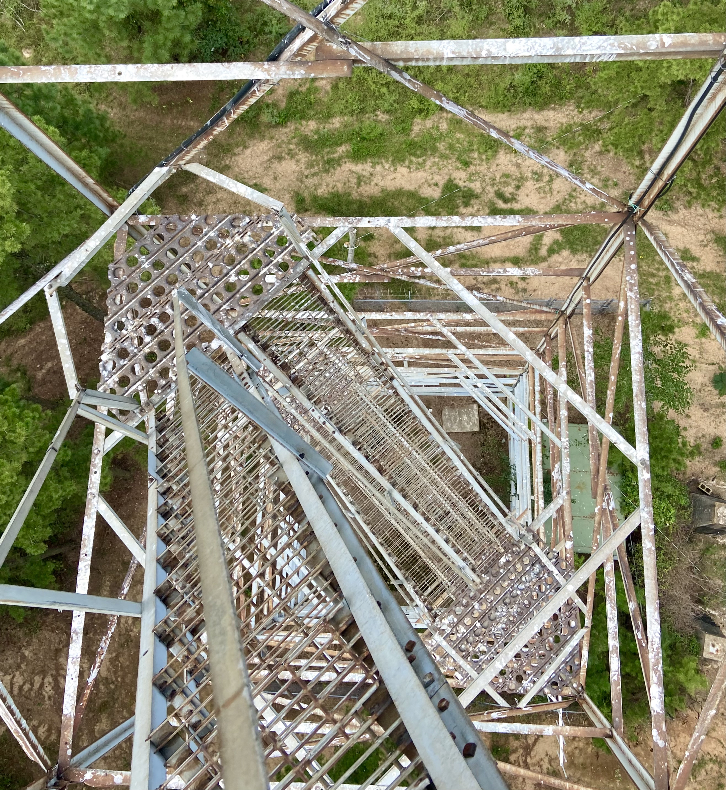 The Arkansas tower still stands on a small patch of land owner by the Arkansas Forestry Commission. The parcel was once much larger and contained housing for the area forester. The tower has a diagonal interior staircase and metal treads. The cab no longer has a floor.