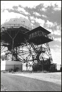 Dwarfed by the adjacent air traffic radar dome, Humboldt Mountain Lookout was built by the FAA to Forest Service specifications in 1958. The CL-100 R-6 metal flattop cab with catwalk on a 30 steel tower replaced a 1940 L-4 on a stone foundation. The Tonto National Forest station is in active service.