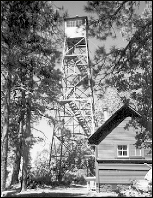 Located on the Morman Lake Ranger District, Lee Butte is a 46' International Derrick tower with 7' x 7' cab built in 1933. In good condition although inactive, the tower is one of only three of its design in Arizona and is listed, along with its spacious ground house, on the National Register of Historic Sites.