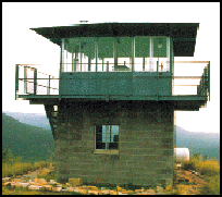 The first lookout on McFadden Peak, located on the Pleasant Valley Ranger District of the Tonto National Forest, was a 20’ steel tower with 7’ x 7’ cab built in 1929. In the 1930s a cabin, stock barn and shed were added. These buildings were removed in 1964 when the present, 10’ concrete blockhouse with a 14’x 14’ CL-100 series flattop metal cab with catwalk, was constructed. The lookout is staffed each year.