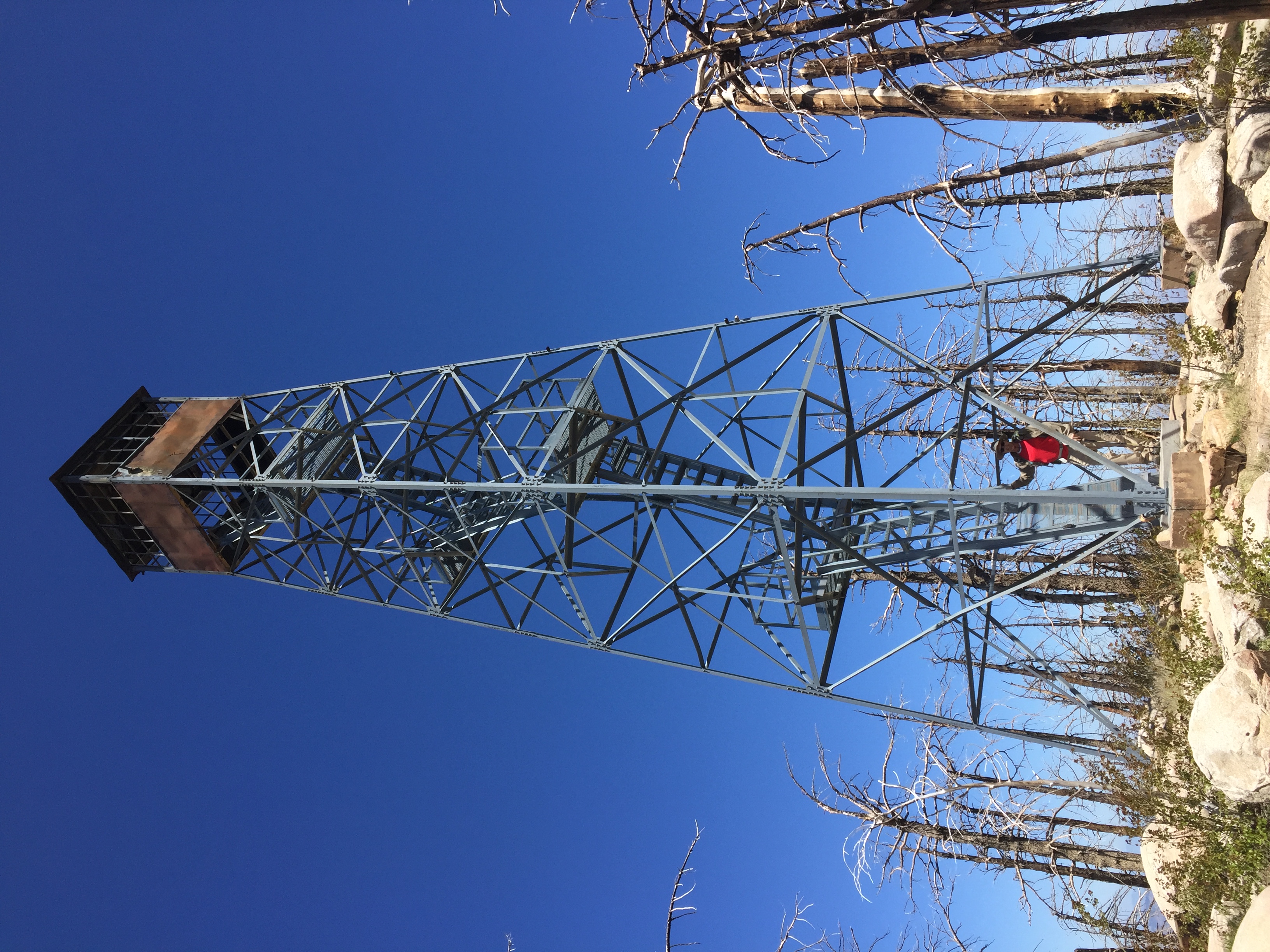 Now in inactive status, Webb Peak Lookout was constructed on the Coronado National Forest in 1933 and is listed on the National Register of Historic Places. The 46’ Aermotor MC-40 with 7’x7’ metal cab originally had a platform ladder access with handrails but has been converted and only the last section uses a ladder.