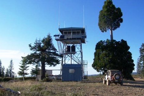 Original (1934) CCC era lookout built for USFS was transferred to CDF in the late 1950s. In 1973 the BC-3 cab was replaced by a 732-6A type cab design. The remodel is Plan Number 757-lA. Facility record's correspondence states that except for page one, cab plans were "the same as used on previous lookouts; for example, Fredonyer Lookout." Staffed as needed.