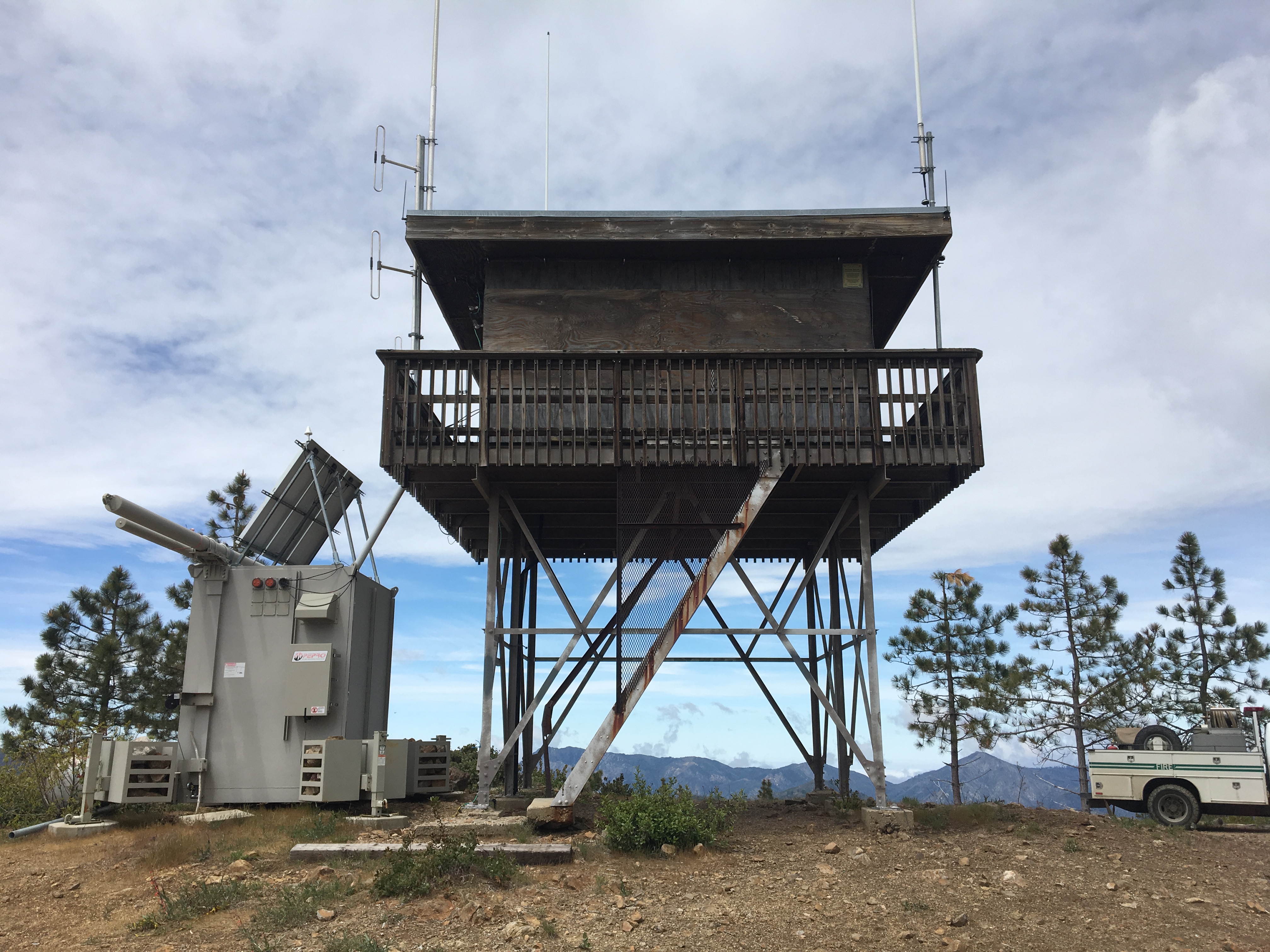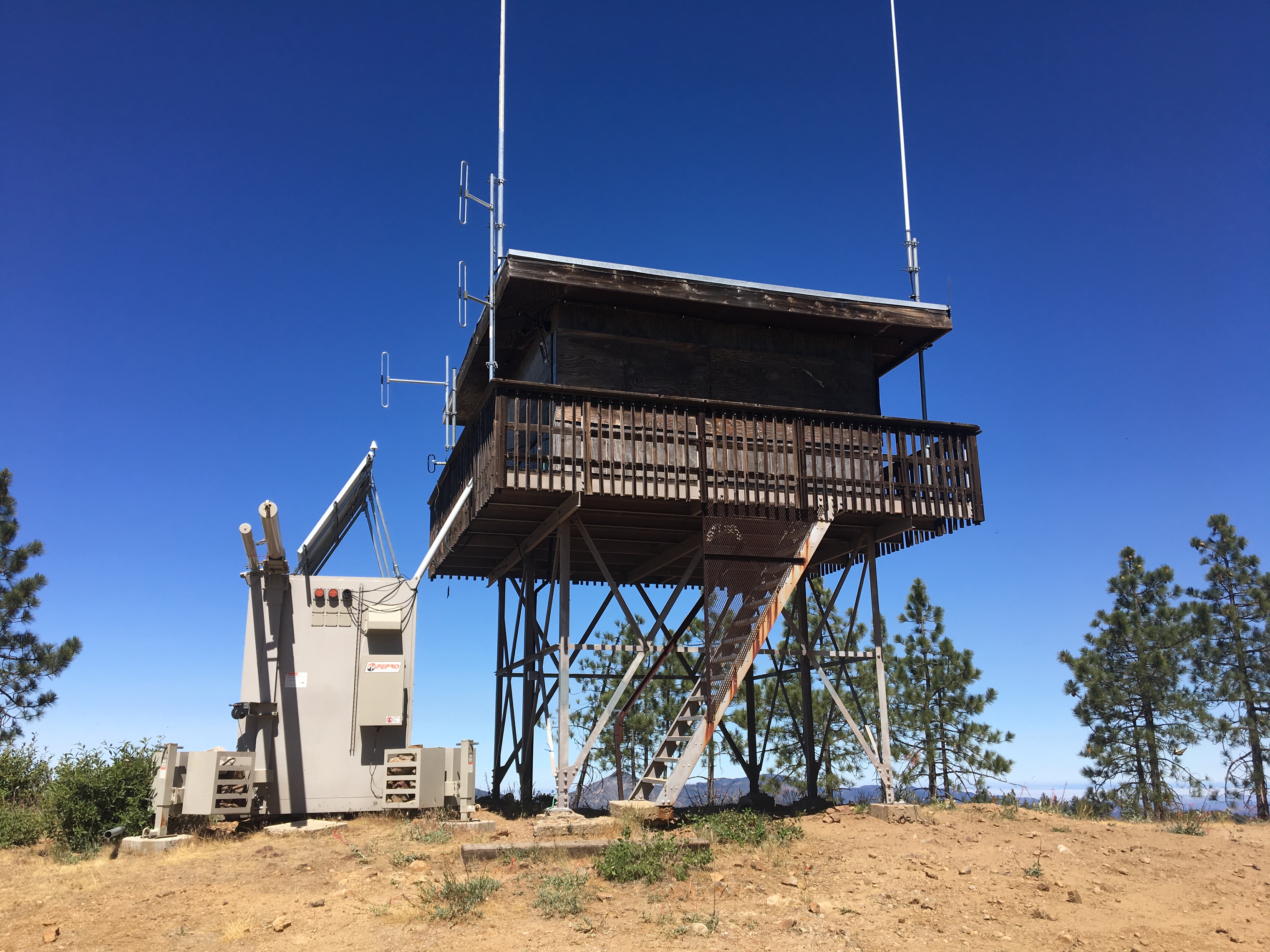 | Comments: | Although unpainted, the wood siding appears to be in serviceable condition. A semi-portable radio repeater vault is mounted at the foot of the south side, but there were no "radiation hazard" signs visible. Pine trees are shrouding the views on three sides. |