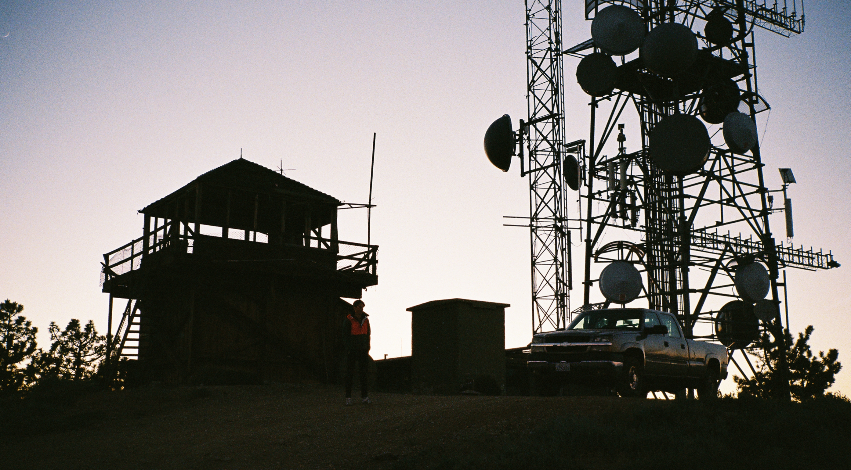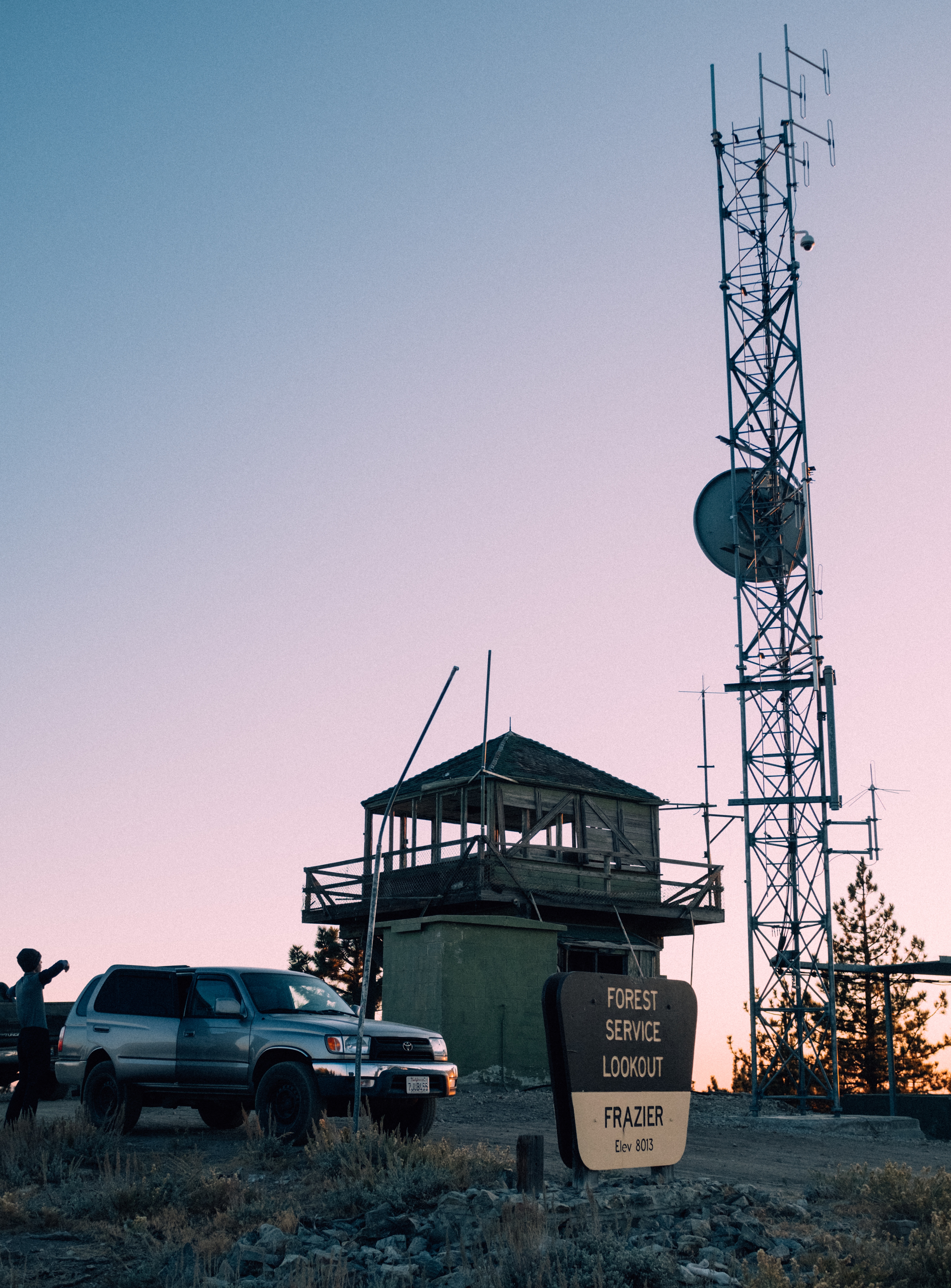 Frazier Mountain was the first lookout site for what was the Santa Barbara National Forest. A lookout was in place some time before 1920. California Region 5 Plan 4A or 4AR was constructed on the mountain. The current structure was constructed in 1943, a California Region 5 Plan BC-301 on an 11 foot timber tower. The tower is somewhat unique in that the lower enclosed room is built inside the tower structure leaving it exposed to the elements.
