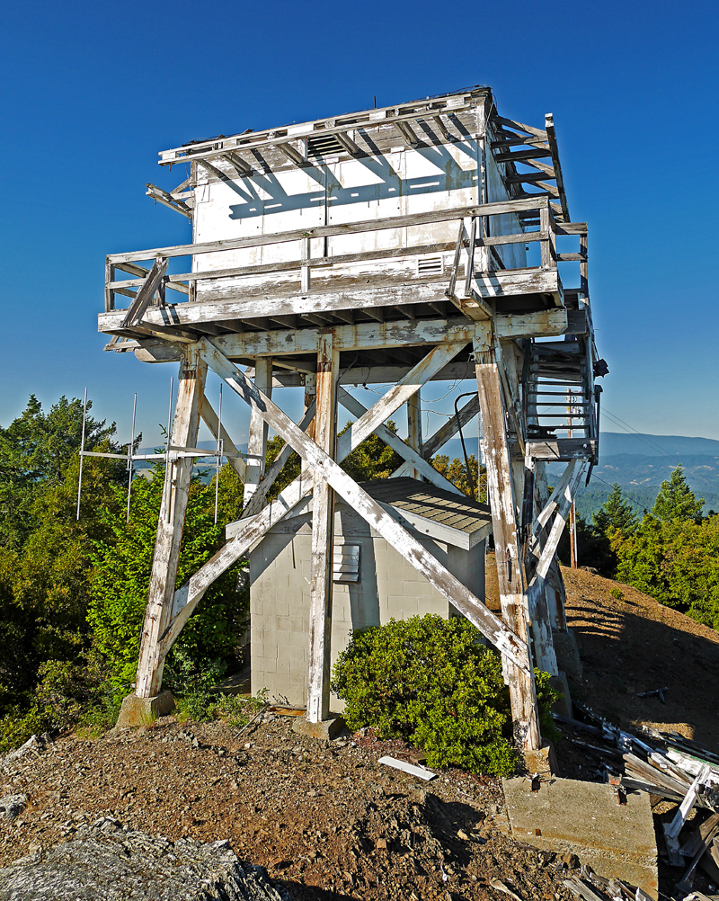 Kettenpom Lookout is a California Region 5 Plan BC-301 cabin on a 17 foot open timber tower.