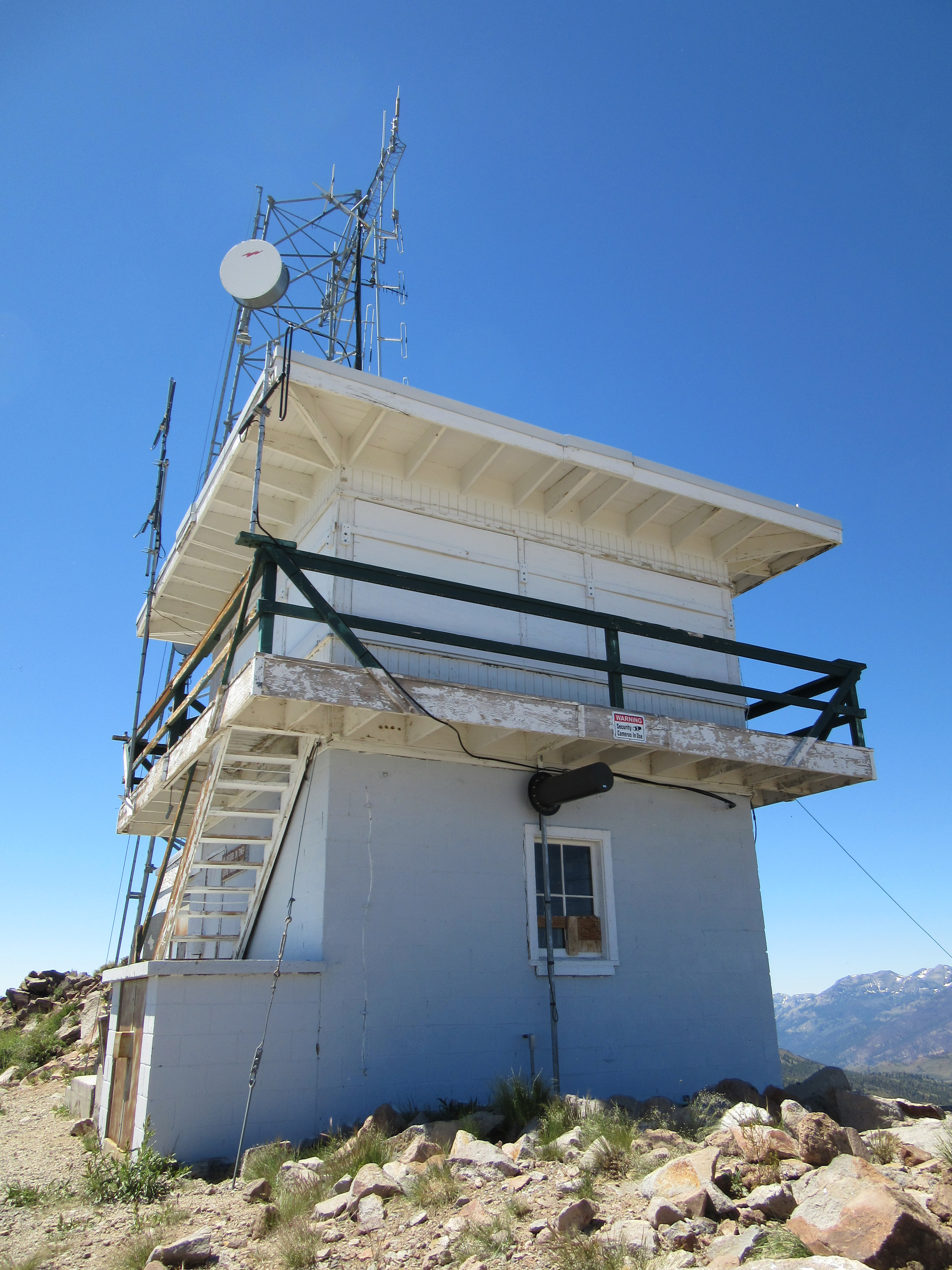 Built in 1957, it is the only lookout remaining on the Humboldt-Toiyabe National Forest. The ground floor is concrete block with a 15’x 15’ cab with catwalk.