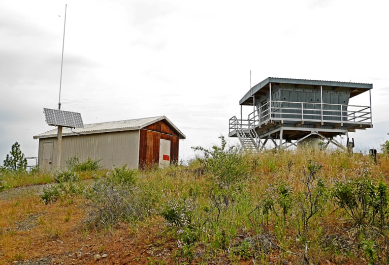 Pattymocus Butte began as an active fire detection site by 1921. Originally a cooperative site between the Forest Service and the State, CDF assumed sole operation of the lookout out in 1950. The ECW structure was replaced by existing building in 1970. It is based on CDF Plan Number 350. The cab is an early version of the standard 732-6A cab used extensively by CDF in Region 2 today. This is the shortest steel K-brace tower in the State of California.