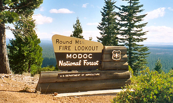 Round Mountain Lookout was constructed in 1937 and rebuilt in 1956. The cabin is a California Region 5 BC-1401, a 1949 revision of the BC-301 on a 9 foot block tower.