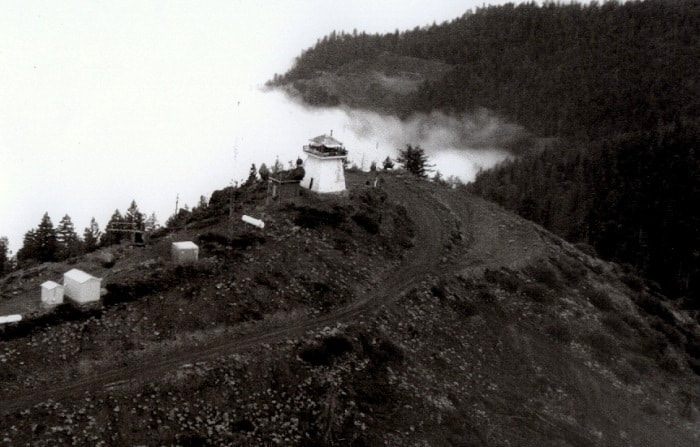 Slater Butte Lookout was originally constructed in 1933. A California Region 5 version of the L4 cabin with prop up shutters on a 22 foot enclosed timber tower. The cabin may have been modified or rebuilt at some time to the BC-1401 1949 revision of the BC-301. New shutters were installed in 2012.