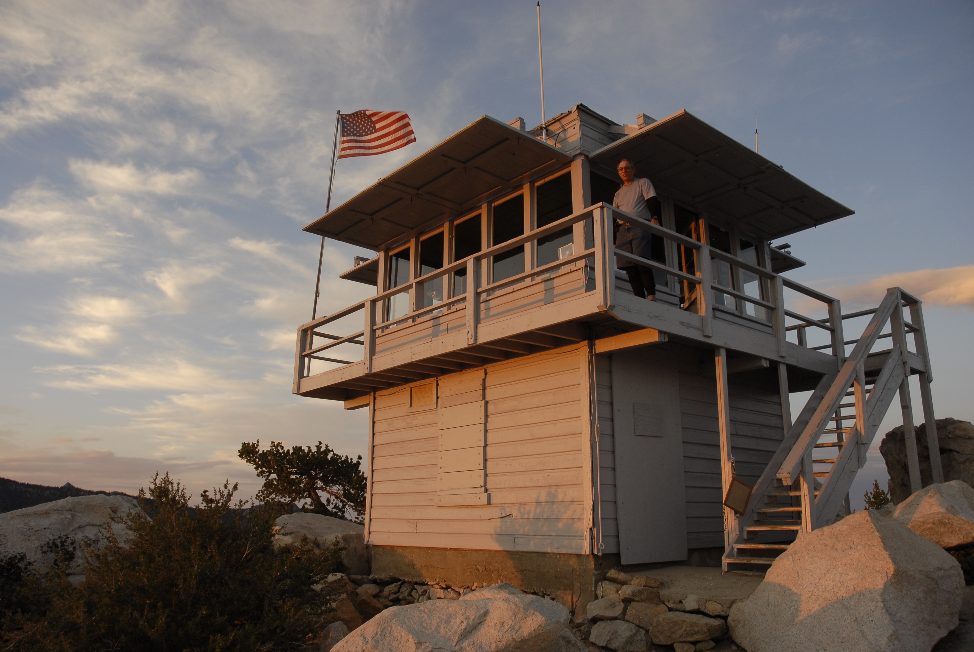 Located within the popular San Jacinto Wilderness on the ldyllwild Ranger District, Tahquitz Peak Lookout is both an important fire detection facility and a hiking destination with expansive views of the Sonoran Desert to the east, and the Los Angeles basin to the west. It is a 20’ enclosed timber tower with R5 14’ x 14’ wooden cab. Built in 1937, it was the last active lookout n the San Bernardino National Forest when it was deactivated. Restored in 1998, it returned to service in October and is staffed seven days a week by Fire Lookout Host volunteers.