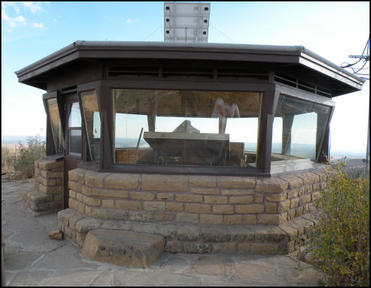 Park Point Lookout in Mesa Verde National Park was constructed in 1939 by the CCC using a special rustic design to blend with the surrounding summit. It has a unique 17' octagonal floor plan. The lookout is constructed of native sandstone, quarried on Chapin Mesa and worked by hand to emulate the stylistic appearance of other Modified Pueblo Revival buildings in the park. It is also an example of the 1920s National Park Service Rustic style that adapted structures to blend with their immediate landscapes.