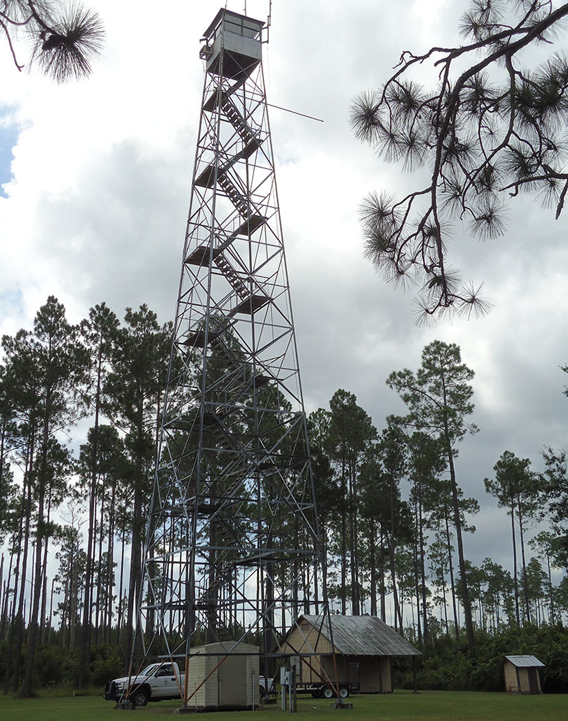 Located on the John Bethea State Forest in northern Florida, Eddy Fire Tower is a 100' Aermotor LS-40 tower with a 7'x7' cab owned by the Florida Forest Service.