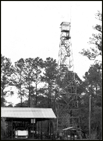 Built in 1928 by the Speir Pine Lumber Company to protect pinelands west of the famous Okefenokee Swamp, Fargo Fire Tower was later transferred to the Georgia Forestry Commission and remains in active service. Located at a state ranger station, the 100' International Stacey steel tower has a metal 7' x 7' cab. It is also considered a local tourist attraction. A large electric star mounted on the side of the cab is lighted annually at Easter, and the fire tower site is used for sunrise services.