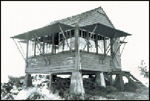 Little Snowy Top is the only remaining 1930s vintage groundhouse L-4 lookout in the Priest Lake area of northern Idaho. Located only two miles south of the Canadian border, its use was phased out in the 1960s, but it escaped demolition due to its remote location (a nine-mile trail). In 1987 volunteers from the Spokane Mountaineers and the Priest River Back Country Horsemen assisted the Priest Lake Ranger District of the Idaho Panhandle National Forests in a two-year restoration effort of the 14’x 14’ groundhouse.