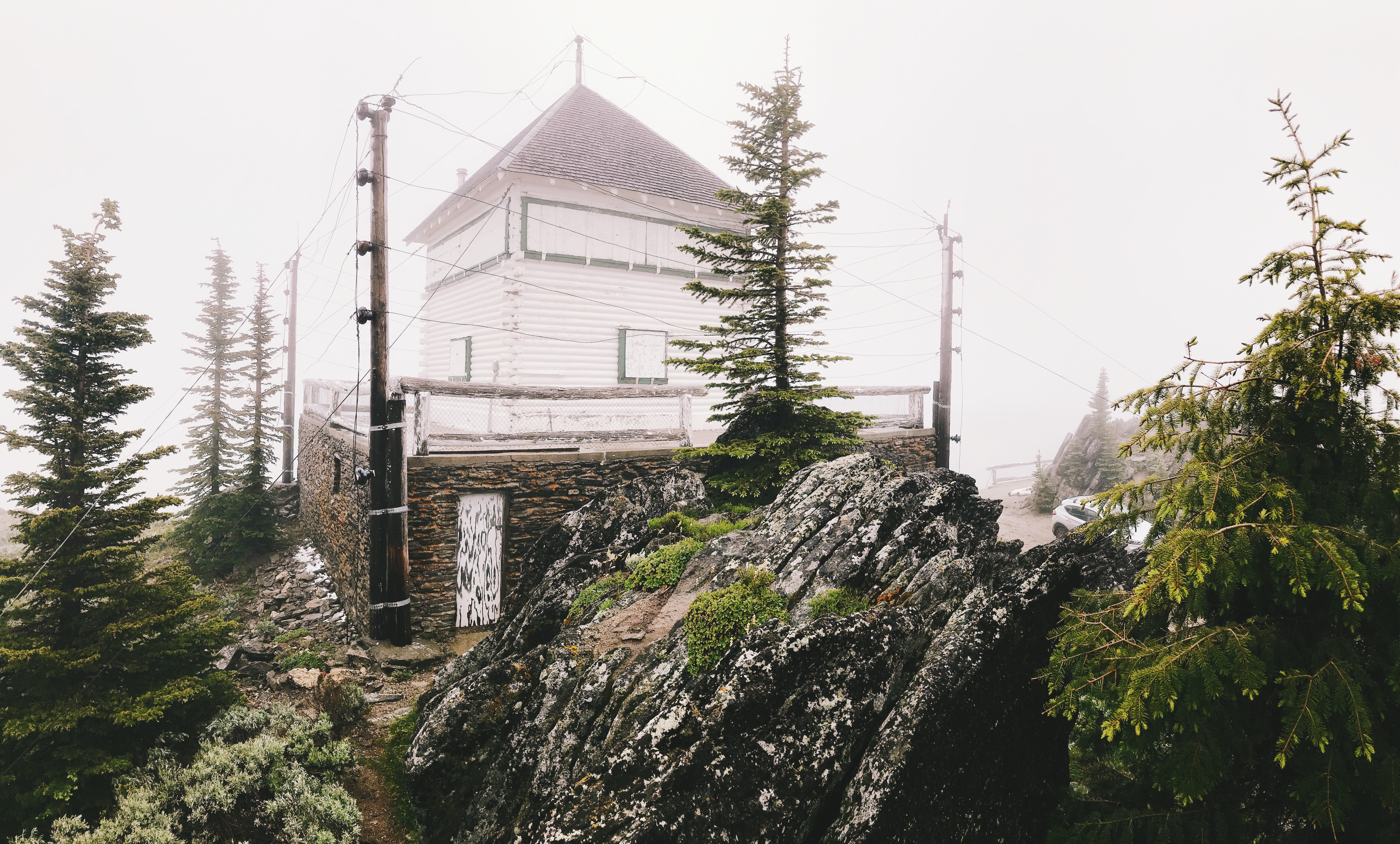 No Business Mountain has been a fire detection site since the 1920's. First as a camp then in 1937 a 2 story, 20x20 log structure was built. This building was replaced with a duplicate design in 1963.