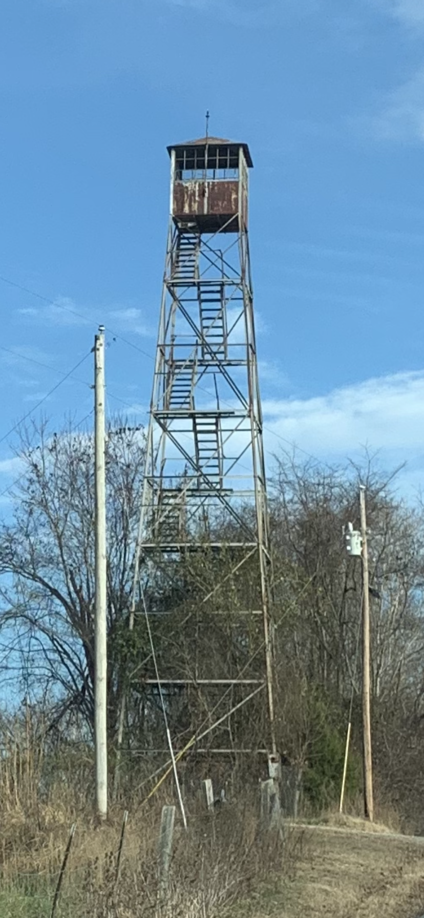 This lookout sits at the intersection of Metcalfe, Adair, and Cumberland Counties atop Dividing Ridge.