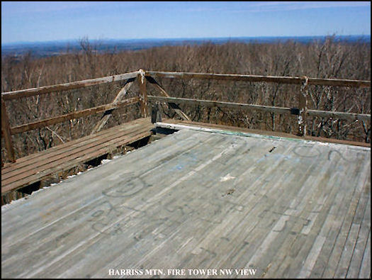 | Comments: | On 8/19/06, I picked up the remains of the Harris Mountain Fire Lookout on my way to Deasey Mountain and some other area lookout sites. On Friday 10/27/06, Henry and I drove the remains 450 miles down to the Pennsylvania Forest Fire Museum and delivered them to Steve Cummings. <br /> <br />The following items were delivered: <br /> <br />o A 6 foot section of stairway (one-half of one full 12 foot section) <br />o One set of leg bolts and bushings <br />o One telephone line insulator <br />o Photos of the removal on 7/26/2006 <br /> <br />This marks the final chapter for this old lookout. |