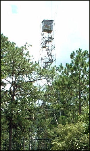 Located at the Airey Work Center on the De Soto National Forest in the south Mississippi pinelands, the Airey Fire Tower was constructed in 1934 by a CCC company with enrollees from New Jersey. The 100’ Aermotor LS-40 tower with 7’x7’ metal cab is a radio relay site and is on standby status for fire detection.