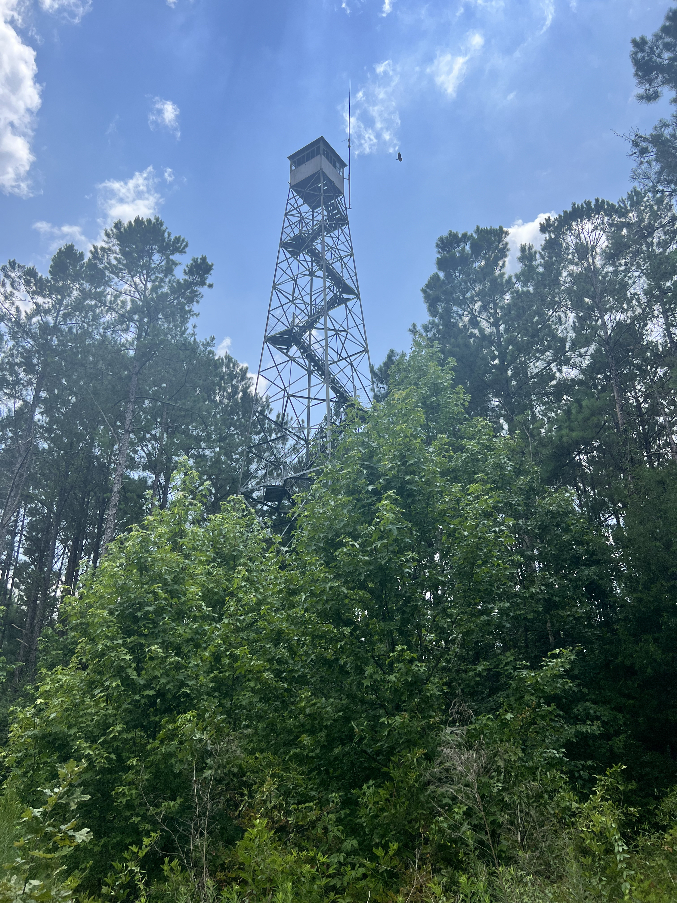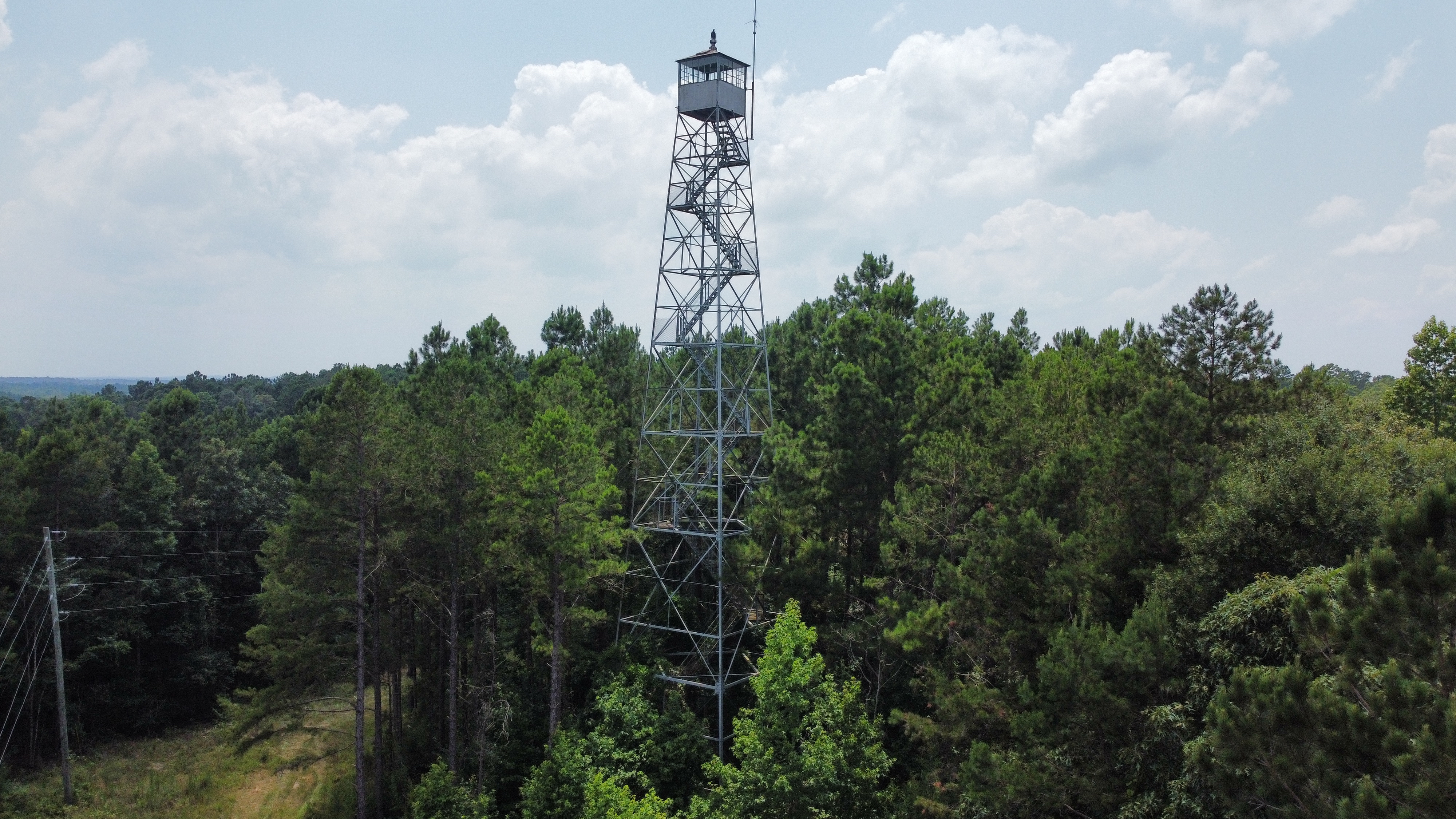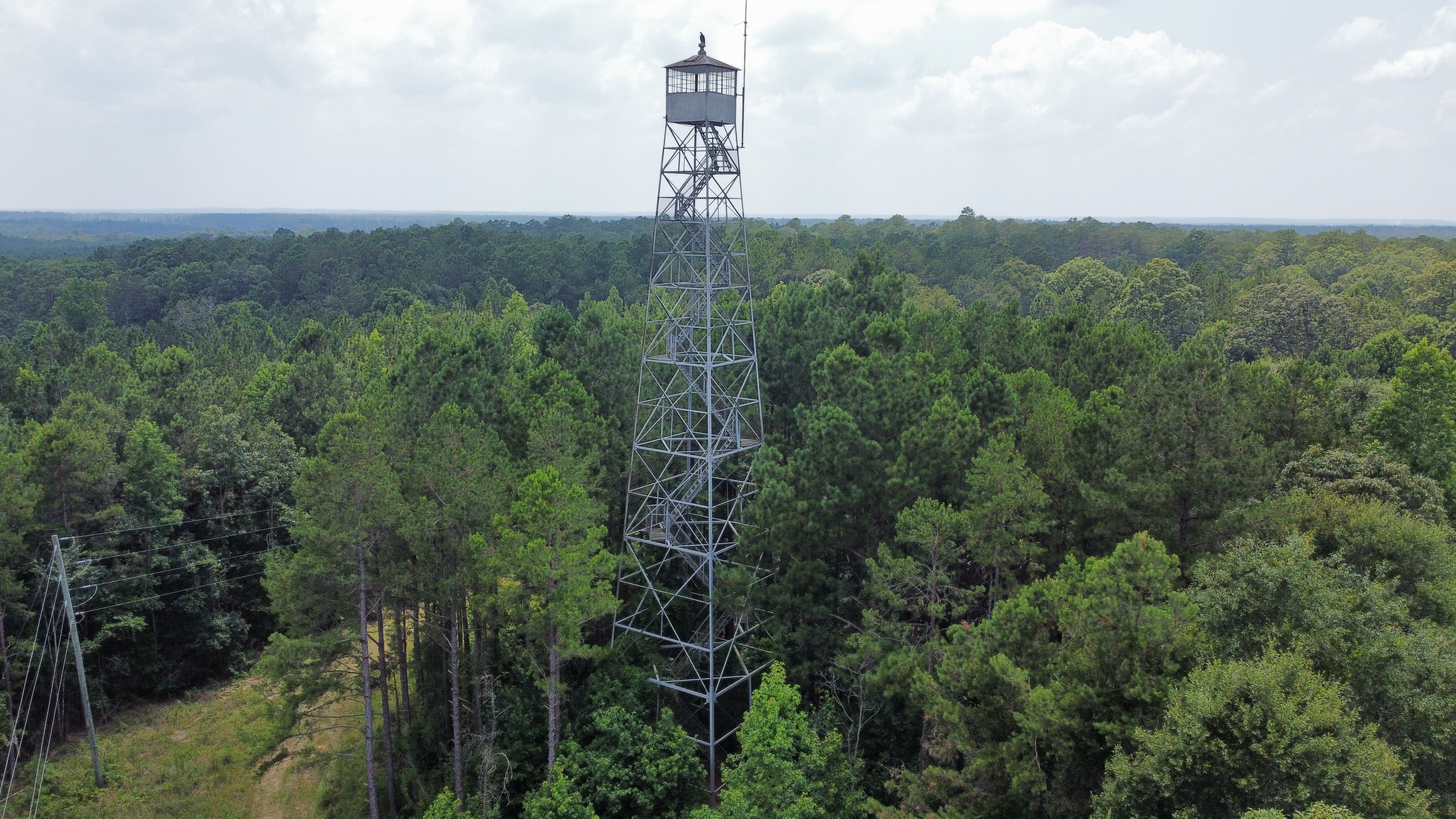 On the Bienville National Forest eight fire towers were built from 1934 to 1940. Three towers were erected on the old Bienville Ranger District (Forkville, Shockaloo/Moore, and Sun Fire Towers) and five on the former Strong River Ranger District (Clear Springs, Heater, Polkville, Montrose, and Spinola Fire Towers). The Shockaloo Tower was dismantled in 1940 and rebuilt further south in Scott County and renamed as the Moore Fire Tower. This move helped to place it in a more central location to serve as the central dispatcher’s headquarters. The last of the fire towers to be erected was Clear Springs Tower sometime between 1937 and 1939. After World War II, the Heater Fire Tower was renamed the Coursey Fire Tower in honor of one its former lookouts who was killed during the war. Today only two towers remain standing: Moore and Clear Springs Fire Towers.