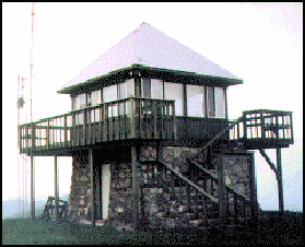 One of a very few two-story lookouts left in North Carolina, Duckett Top was built in 1936 by the CCC for the US Forest Service. In 1966 it was transferred to the NC Forest Service, which continues to staff it. The 14’x 14’ wooden cab with catwalk is atop a 12’ rock foundation located on a “bald mountain” northwest of Asheville.