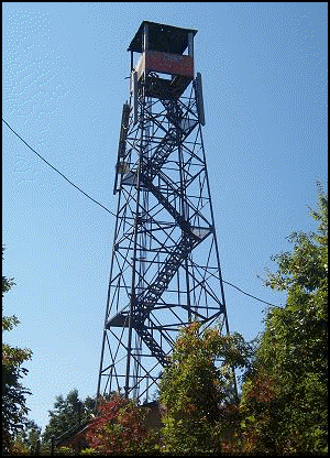 One of two fire towers remaining on the Cherokee Indian Reservation, Mt. Noble Lookout was built by the Bureau of Indian Affairs in 1957, replacing a wooden tower dating from the 1930s. Unused for many years, the 60’ Aermotor tower with 7’x7’ metal cab, the BIA and the NC Div. of the Forest Fire Lookout Association are working together on a restoration plan.