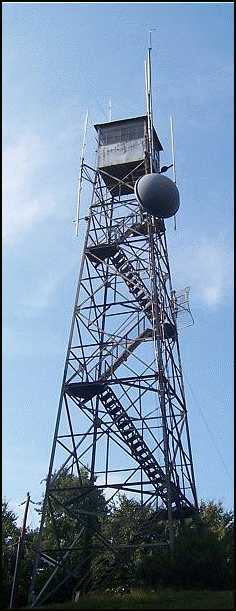 Famed in Revolutionary War history, Rendezvous Mountain Lookout is the centerpiece of the state forest of the same name. Constructed by the North Carolina Forest Service in 1936, the 50’ Aermotor tower with 7’x7’ cab is now restricted for electronics use.