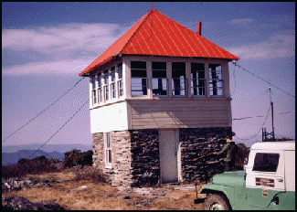 Yellow Mountain Lookout is a 14'x14' wooden cab with a steep pyramid roof atop an 8' stone base. Once a common sight in the southern Appalachians, this design has all but disappeared. Unused for 20 years, the structure has been restored by volunteers and the staff of the Highland Ranger District of the Nantahala National Forest.