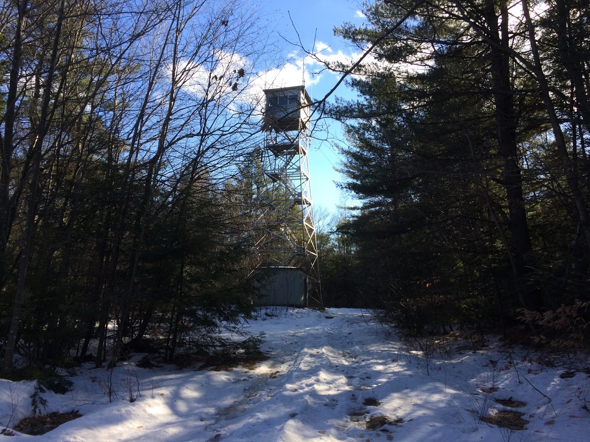 | Comments: | Although some aspects of this tower are showing its age, the majority of it is in good condition. The stairs and observation deck are all fine, but there are no views, as trees have grown up around the tower and block views in most directions. One of the panes of glass in the cab is broken and there does not appear to be anything preventing snow from going into the cab. Remains of the cabin can be found to the south of the front of the tower. |