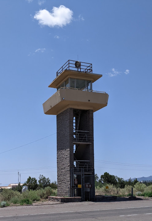 Situated at the location of the former Main Gate of the Los Alamos National Laboratory, the Los Alamos Fire Lookout operated on and off for approximately 30 years and was primarily staffed by Los Alamos Fire Department personnel after 1951 (Zinn, pgs. 164-165). This particular tower replaced an earlier structure that was operated jointly by the Atomic Energy Commission and the Forest Service from 1944-1948 (Zinn, pgs. 164-165).