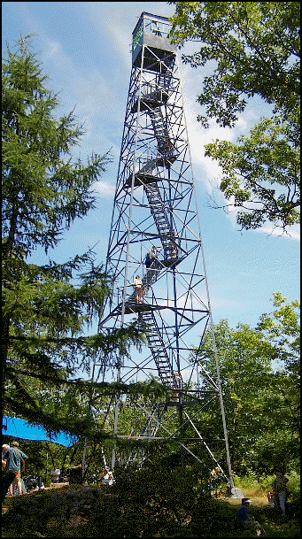 | Comments: | Fire Tower had recently been painted, but wooden landing boards do need a coat of paint. Stair treads are metal and well painted. No window glass in place. No roof in place. Some graffiti needs to be painted over. |
