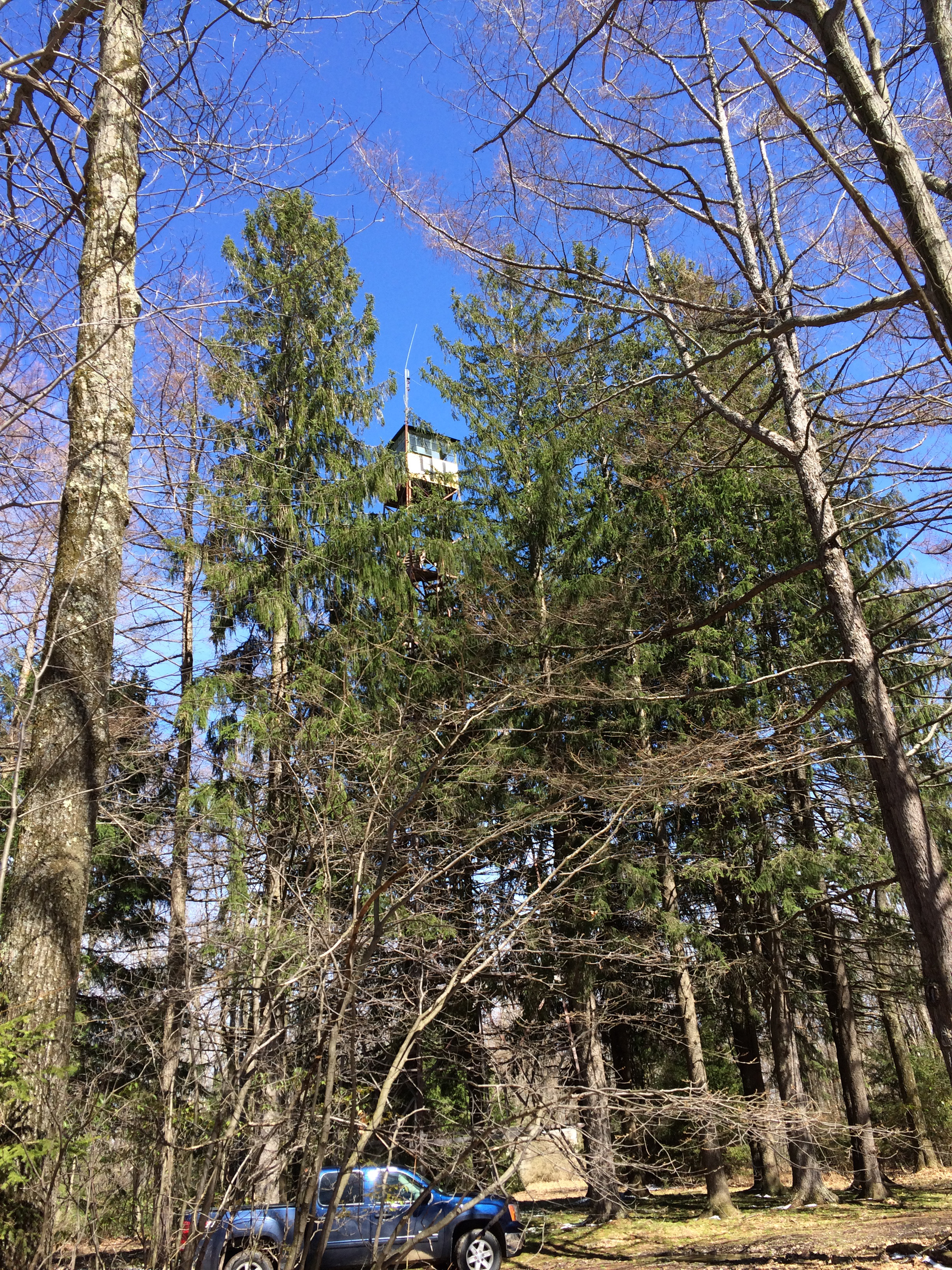 Located along PA 44 in remote Potter County, Cherry Springs Fire Tower overlooks the headwaters of East Fork First Fork Sinnemahoning Creek and Pine Creek. A fire tower has graced this site since 1917.