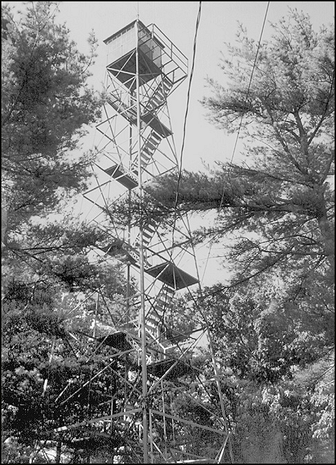 Located eight miles north of the Maryland, Snowy Mountain Lookout is in the Michaux State Forest not far from the historic Mont Alto Forest Ranger School. An 80-foot Aermotor tower with 7' x 7' metal cab was constructed in 1930. It made the news on October 29, 1973 when vandals felled the tower, cutting two of the four legs using only hacksaws. The criminals were eventually caught and charged with replacing the tower in 1975 at a cost of $45,800. The new 80-foot Aermotor LS-40K tower with a catwalk on one side is located on the Appalachian Trail and is used during peak fire periods.