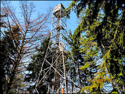 The Wheeler Fire Tower on the Allegheny National Forest is an unusual Blaw-Knox tower with 7’x7’ metal cab. Built in 1923, the tower has sloping legs until the last four sections which are vertical.