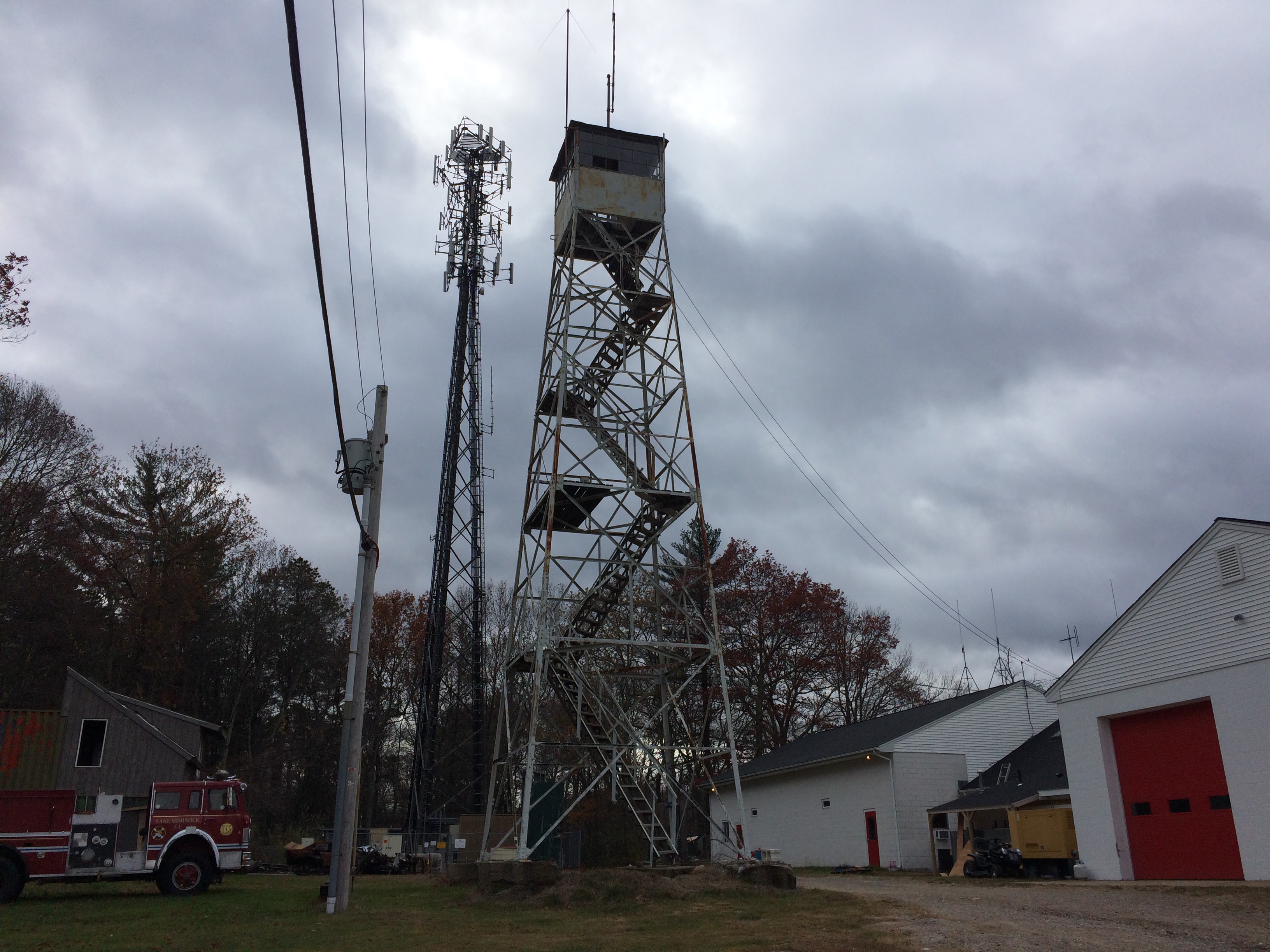 | Comments: | This tower, while it is not fenced, should not be climbed. It now holds radio equipment in the cab and the siren for the West Greenwich Fire Station on a platform in the middle of the tower. I asked a few people in thr fire station, which it is right behind, if it is climbable or not before I climbed it, and they said that it is not safe to climb, as the wood has not been replaced in at least 25 years. There are many holes in the stairs and the glass is broken in some of the windows. |