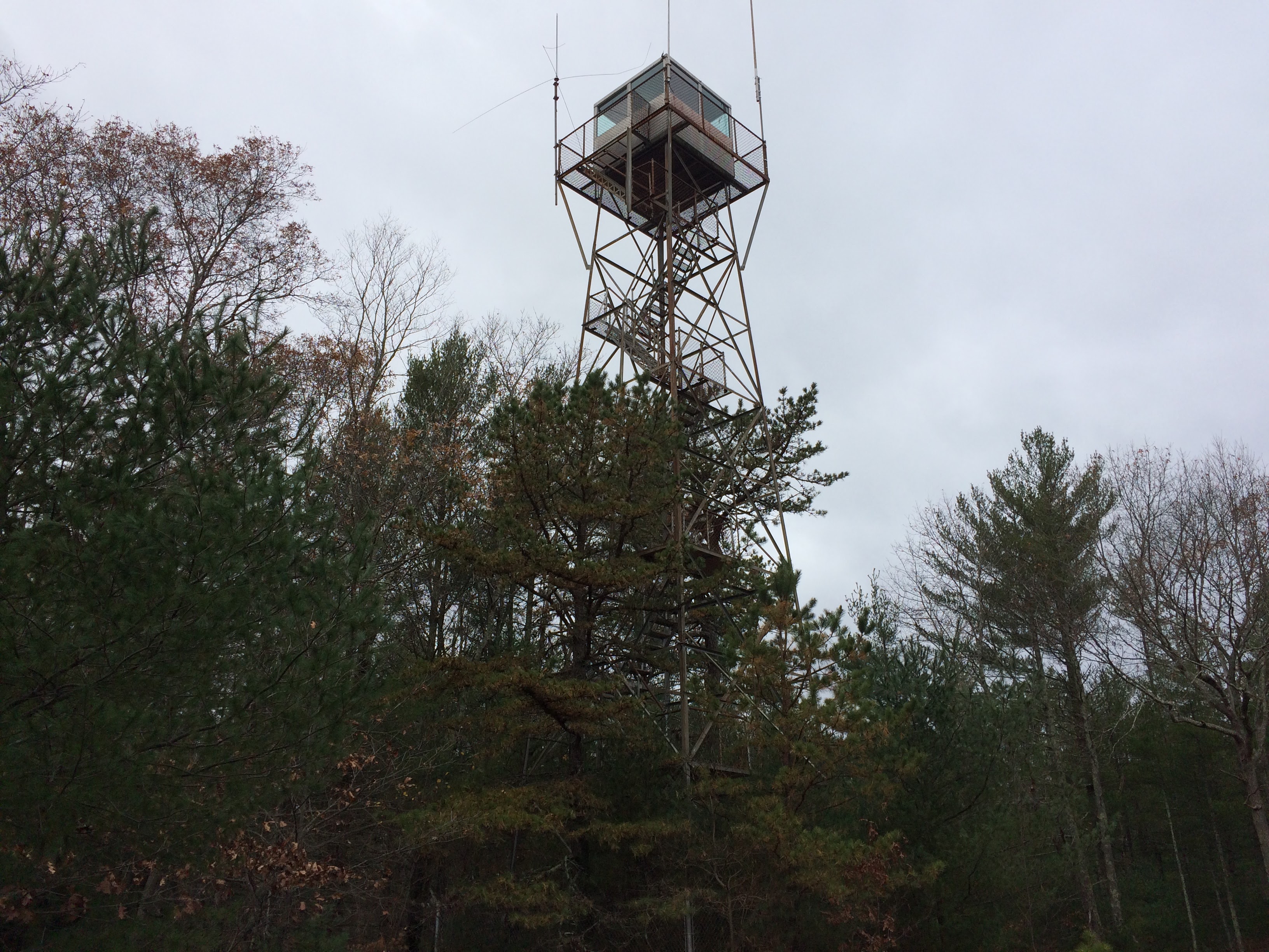 | Comments: | This tower is in okay condition for its obvious lack of maintenance. Trees are grown up around the legs of the tower, the lower portion of which is encased in vines. The lower stairs have been removed. Every step and landings is grated steel, not wood. It appears that everything on the tower is fine, however. |