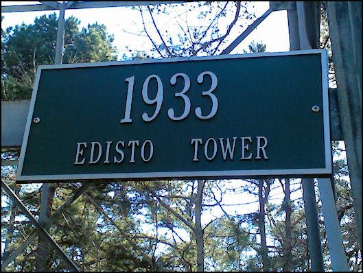 Constructed circa 1933 by the CCC, this Bethlehem Steel tower is 110 feet tall with a 7'x7' steel cab and centered pivot-out type windows, was first referred to as the "Edisto Tower" by the SC Forestry Commission (SCFC). It was originally located at about 12 miles ESE of Bamburg, SC. The tower was purchased from SCFC and moved to private property in October 2005.