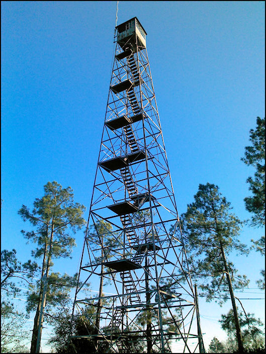 Built around 1936, this 100' Aermotor LS-40 tower with 7'x7' cab is one of three still owned by the SC Forestry Commission in Lexington county. A nearby keeper's house is currently used part time as a law enforcement substation for the Lexington County Sheriff's Department.