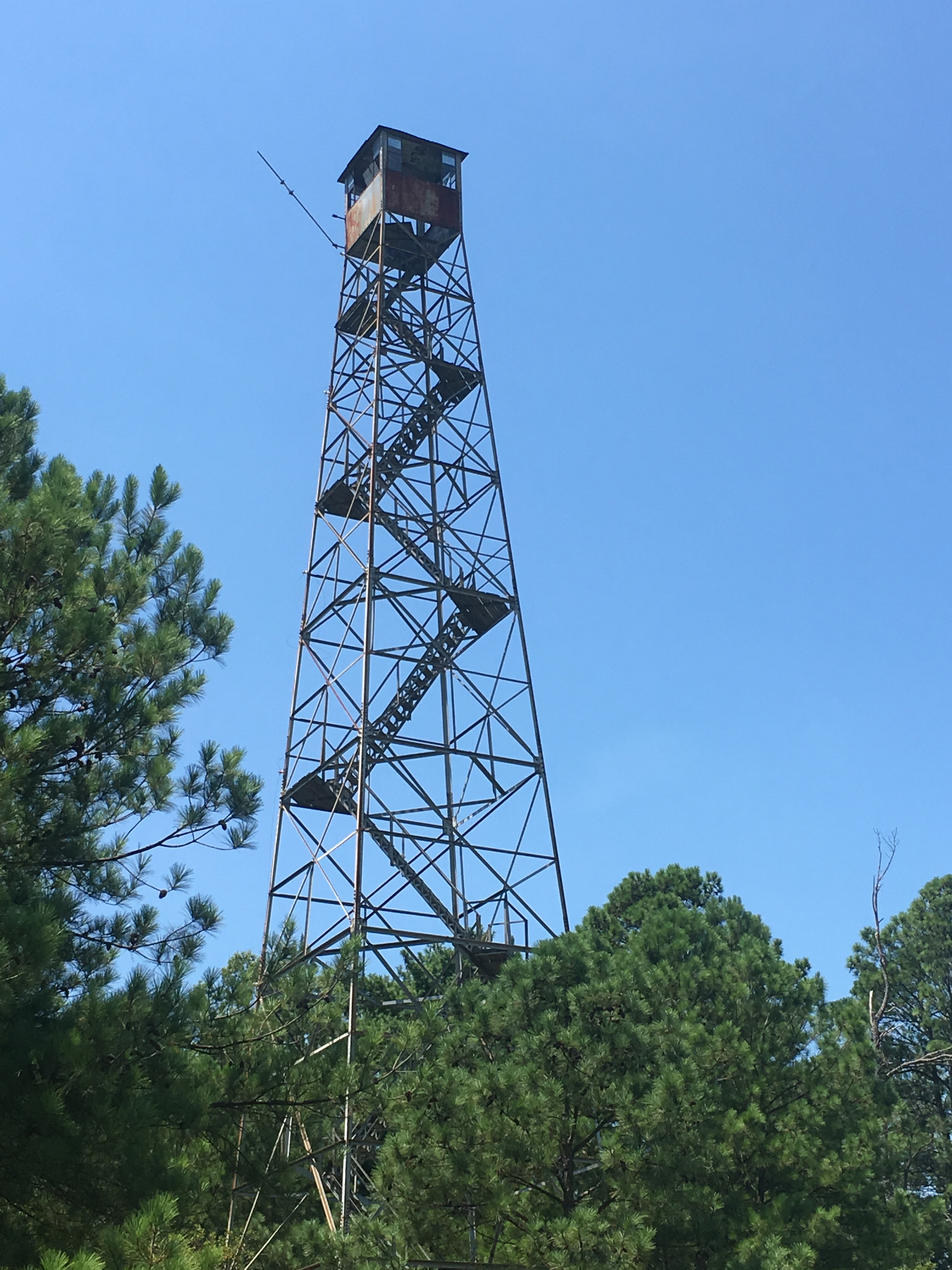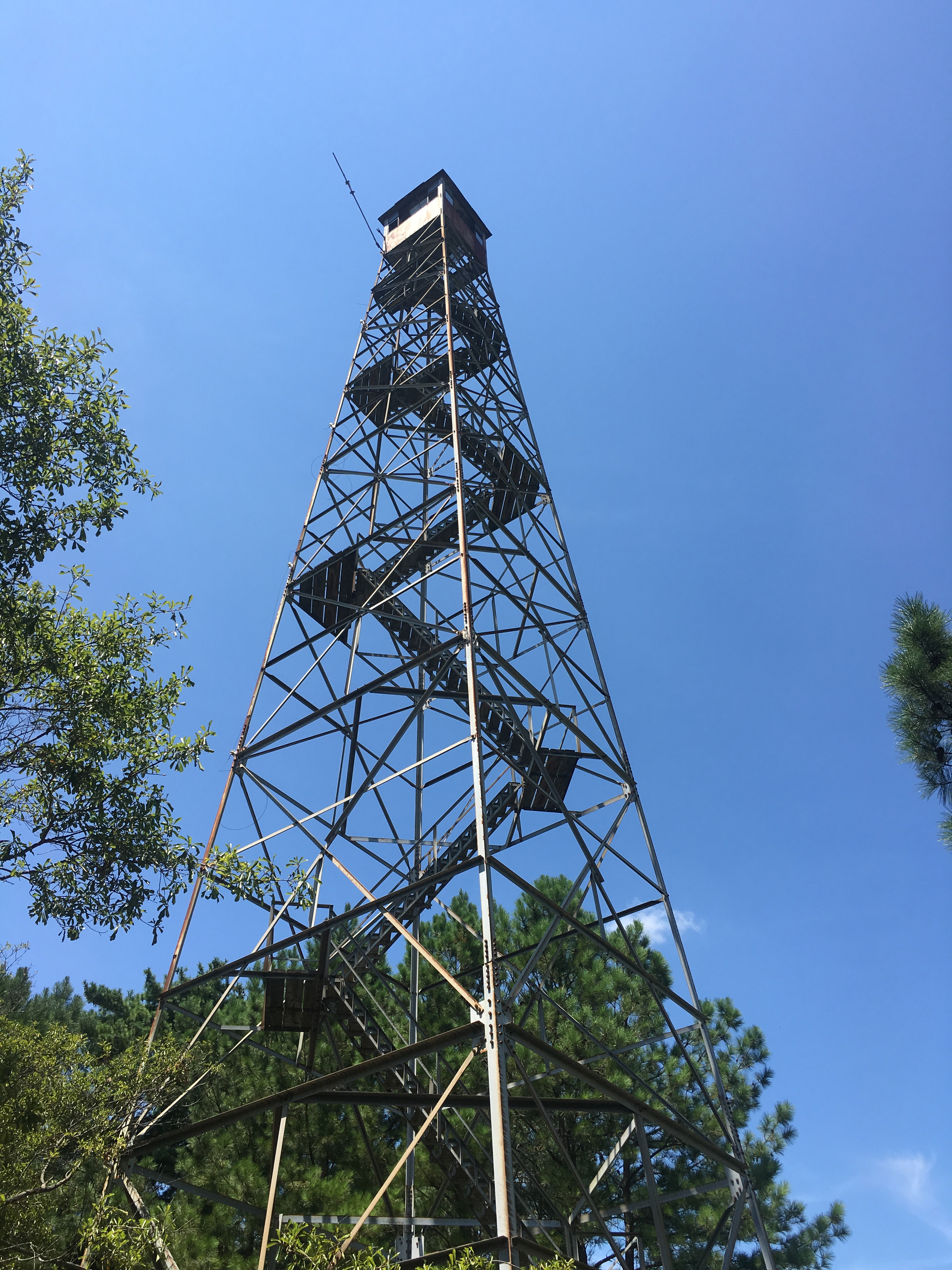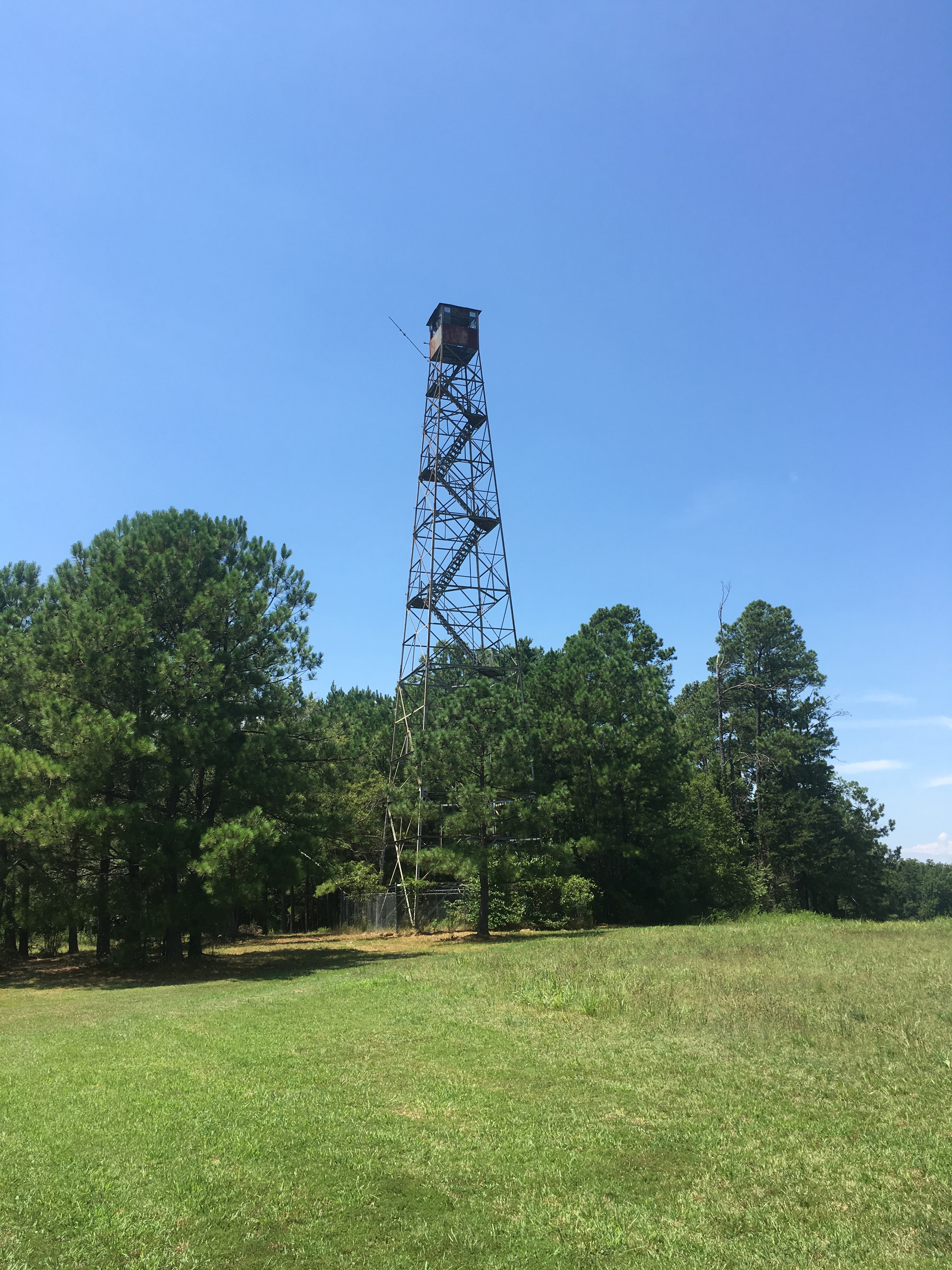 This 120-foot tower, possibly a Bethlehem Steel model, is located in a rural area near Clemson University. The tower has been abandoned since 1993 and is missing its floor as well as some windows.