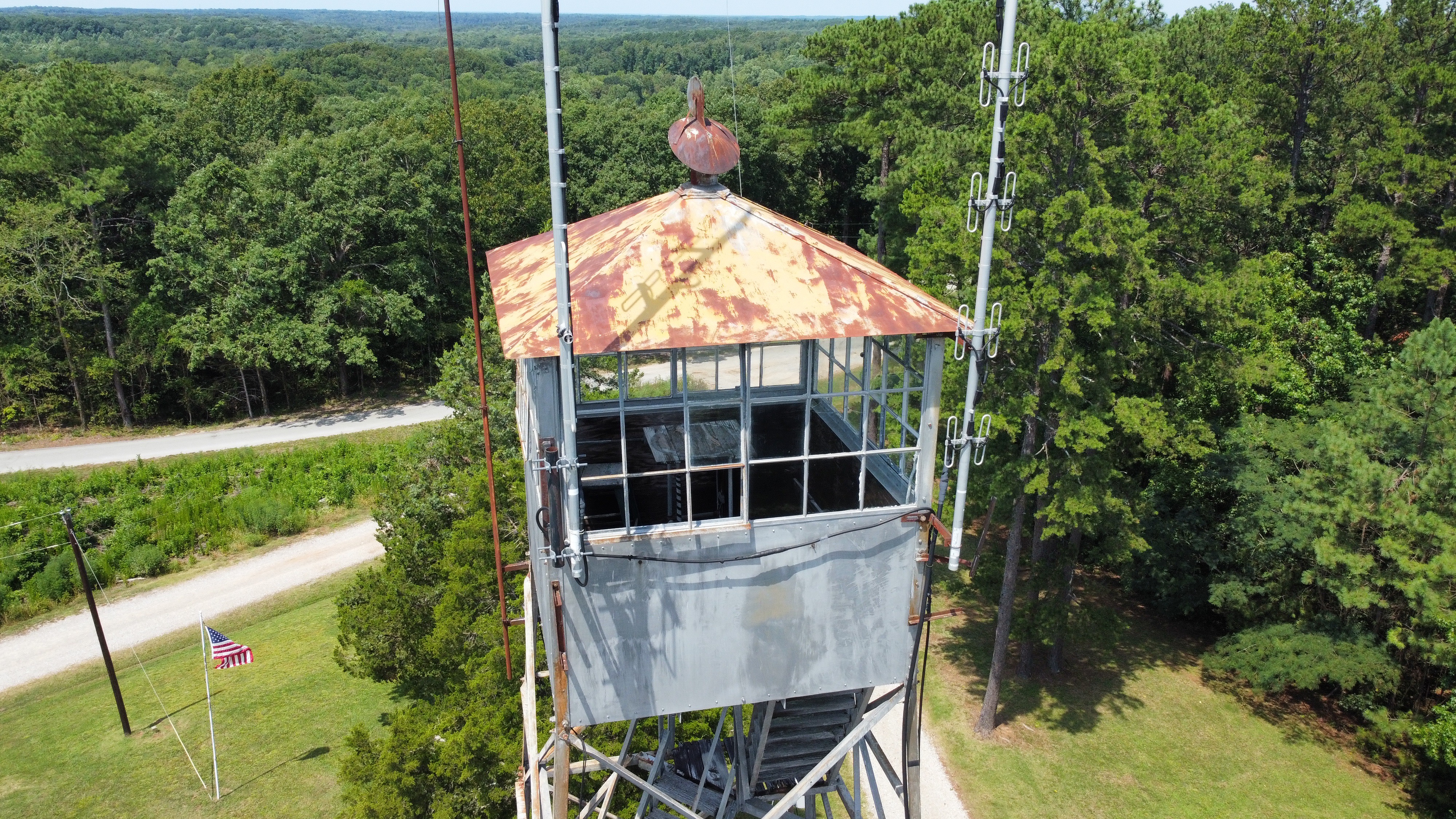 This tower is a 60ft Aermotor MC-39. The first flight of stairs has been removed since my last visit on 8/28/21.