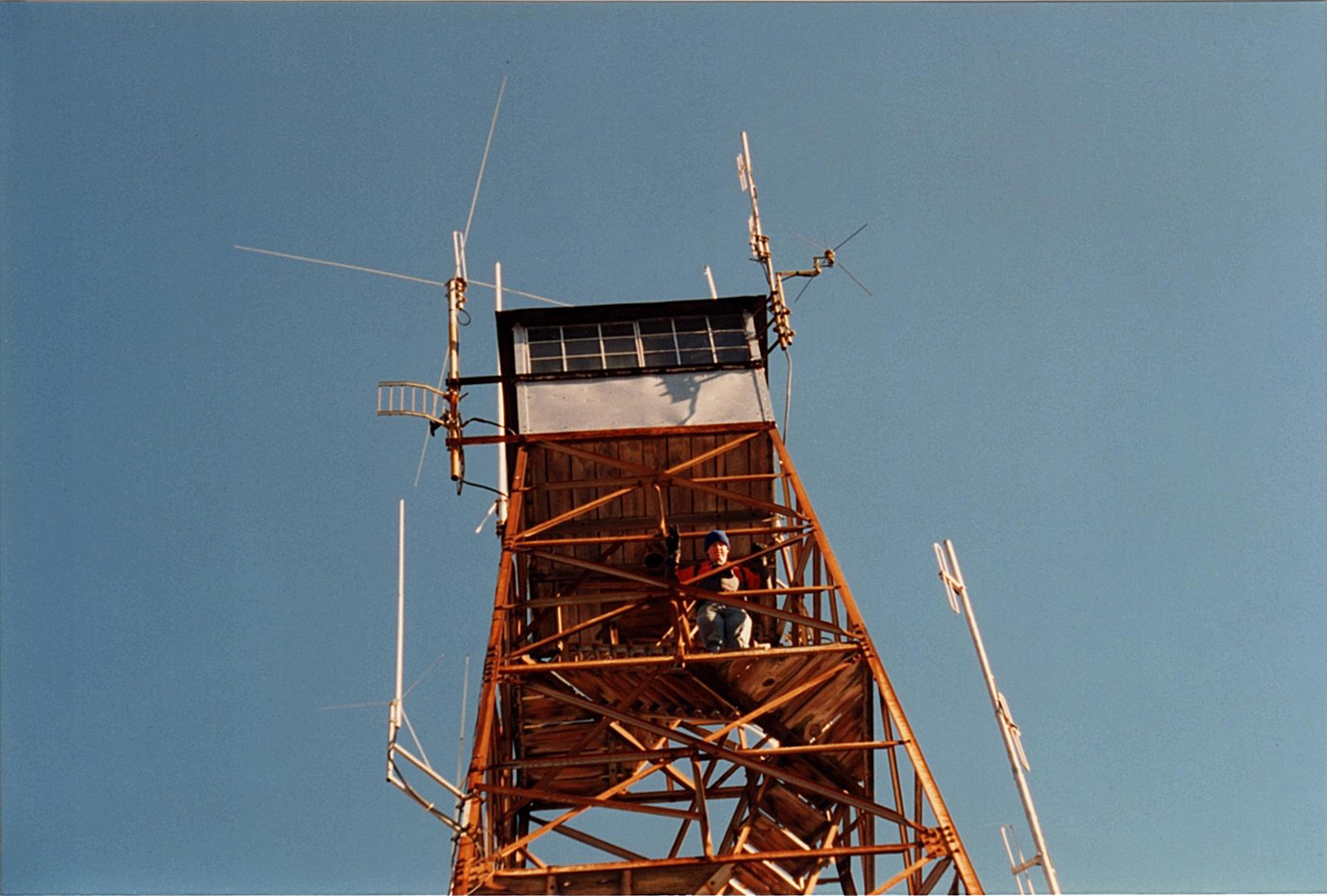 This privately owned 100-foot steel tower was built in 1933. Prior to its removal in March 2023, it was fenced in with communications equipment on the tower and in the cab. The cab was approximately 8-foot square.