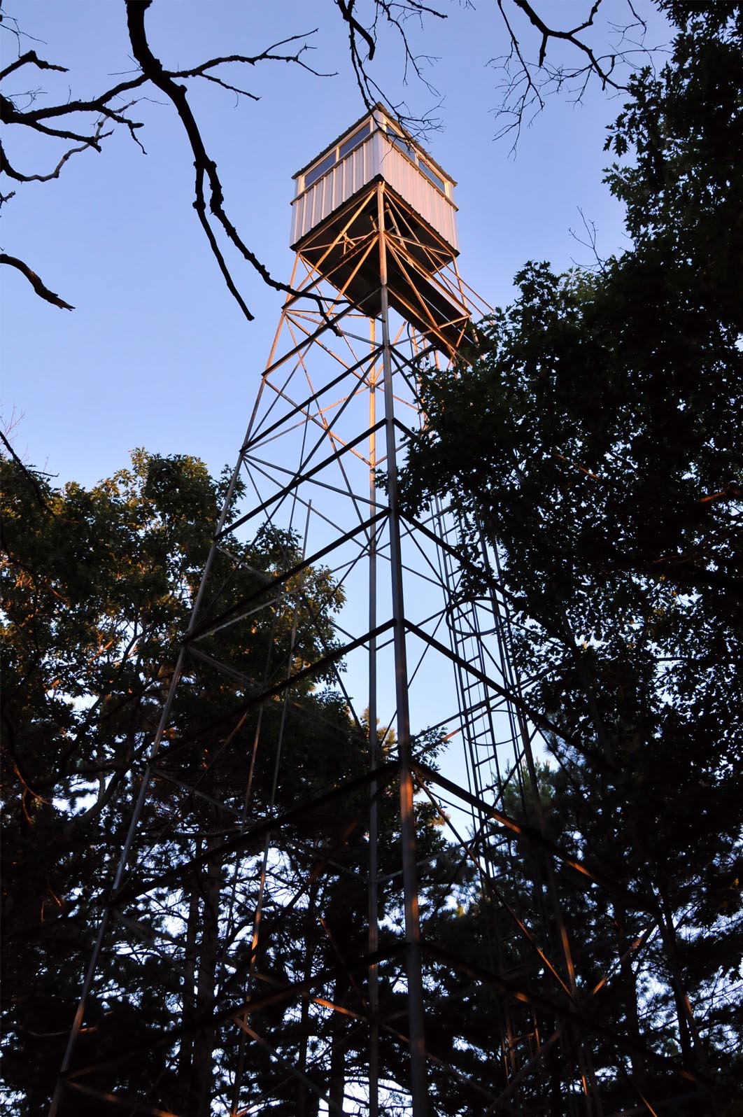 This 70-foot tower is referred to in historical records as a “Baker Latest Rebuilt (1932)” type tower. It appears very similar to the Wisconsin standard tower and features an external cage protected ladder. It was built in 1932.