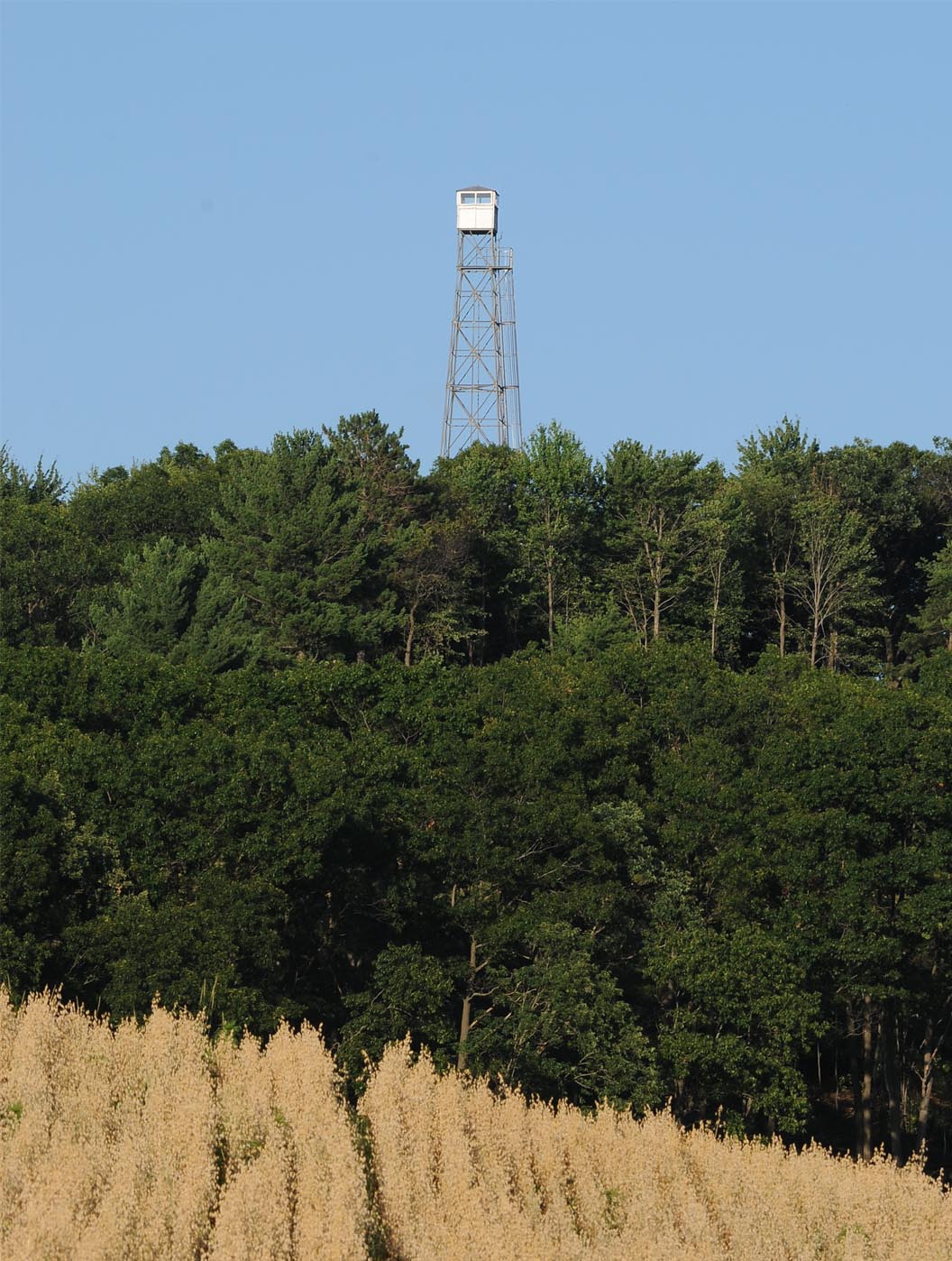 This 82-foot Wisconsin standard tower features an external cage protected ladder and was built in the early 1930s. National Geodetic Survey notes from 1934 indicate a fire tower was in place at this site by that time. Twin Mound tower was staffed intermittently during spring fire season until 2015 when Wisconsin decommissioned its lookout network.