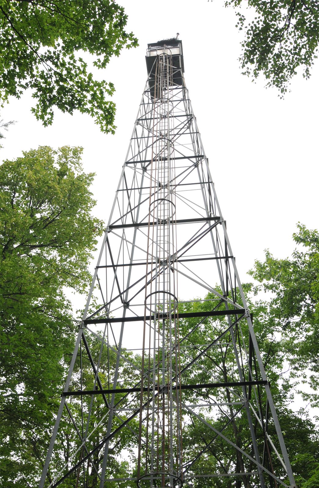 This 100-foot Wisconsin standard tower features an external protected ladder. It was built in December 1939.